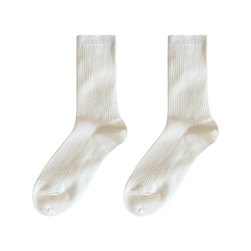 灰色袜子女中筒袜春秋款纯棉韩版长筒白色夏季薄款堆堆袜配小皮鞋