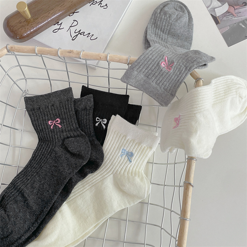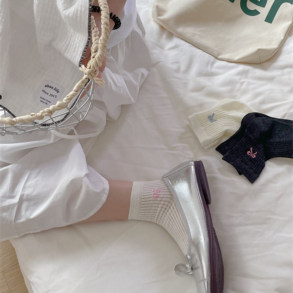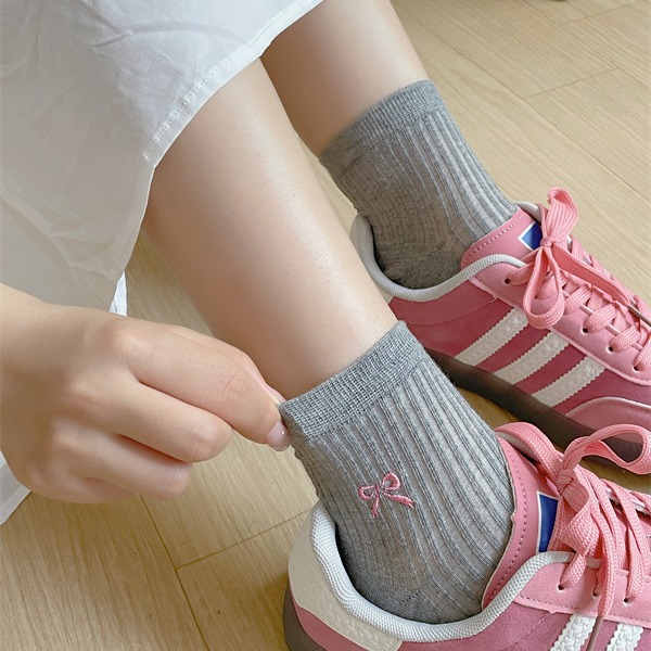 短筒刺绣蝴蝶结袜子女夏薄款竖条百搭透气棉袜i韩版日系学院风袜