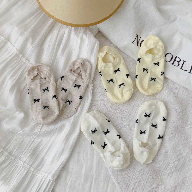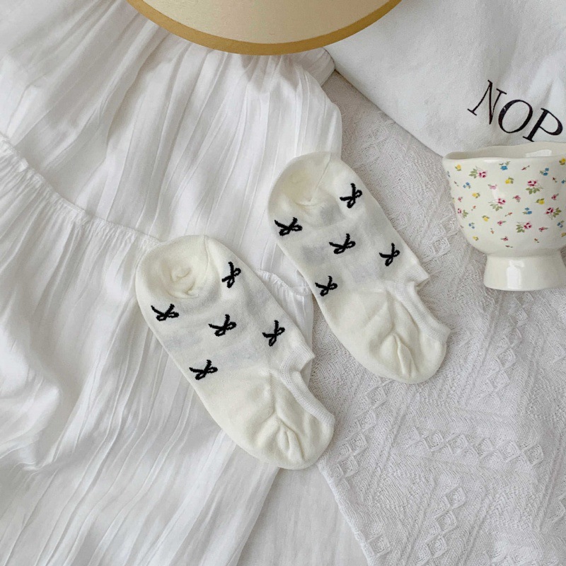 蝴蝶结袜子女隐形船袜夏季薄款防滑不掉跟韩版日系夏天短袜