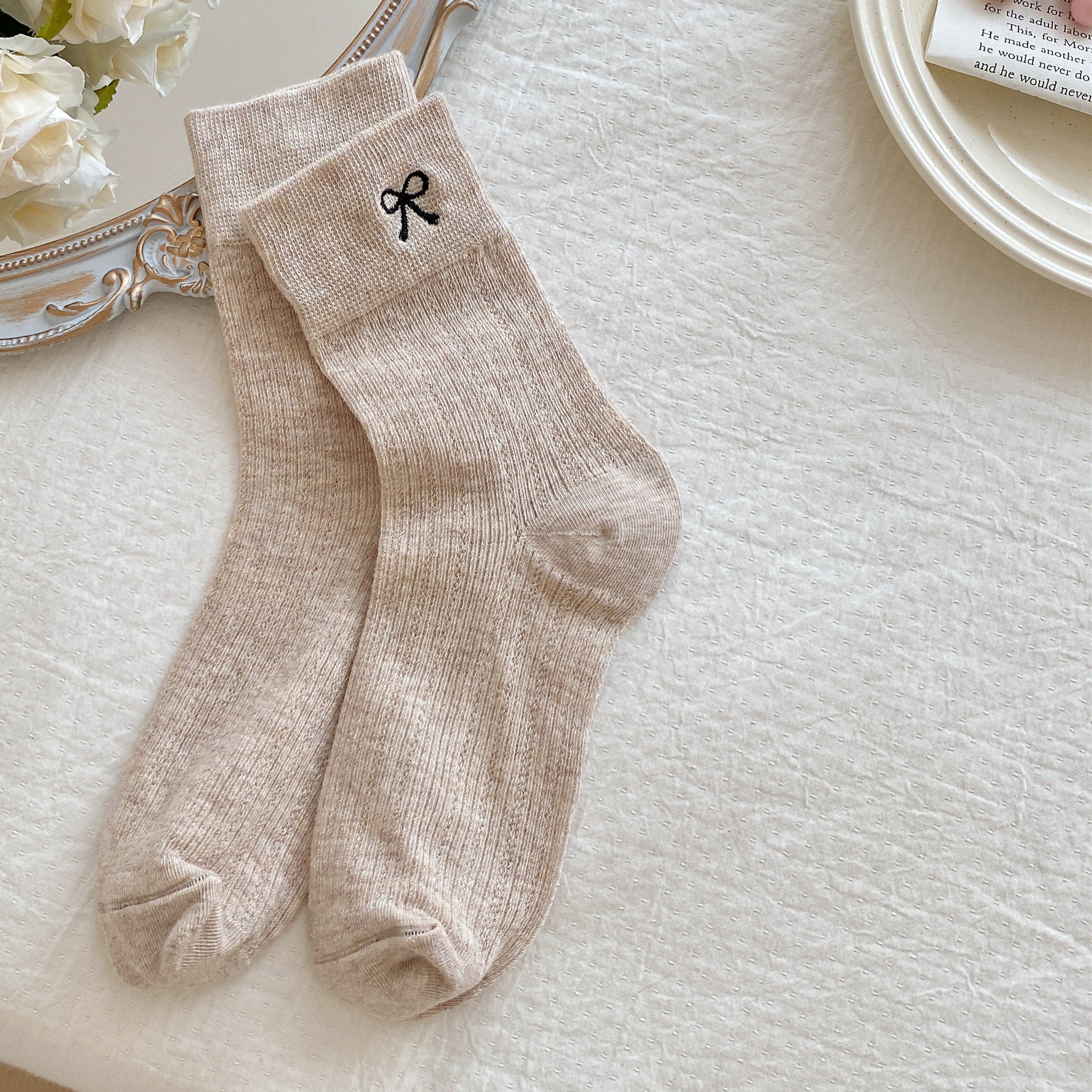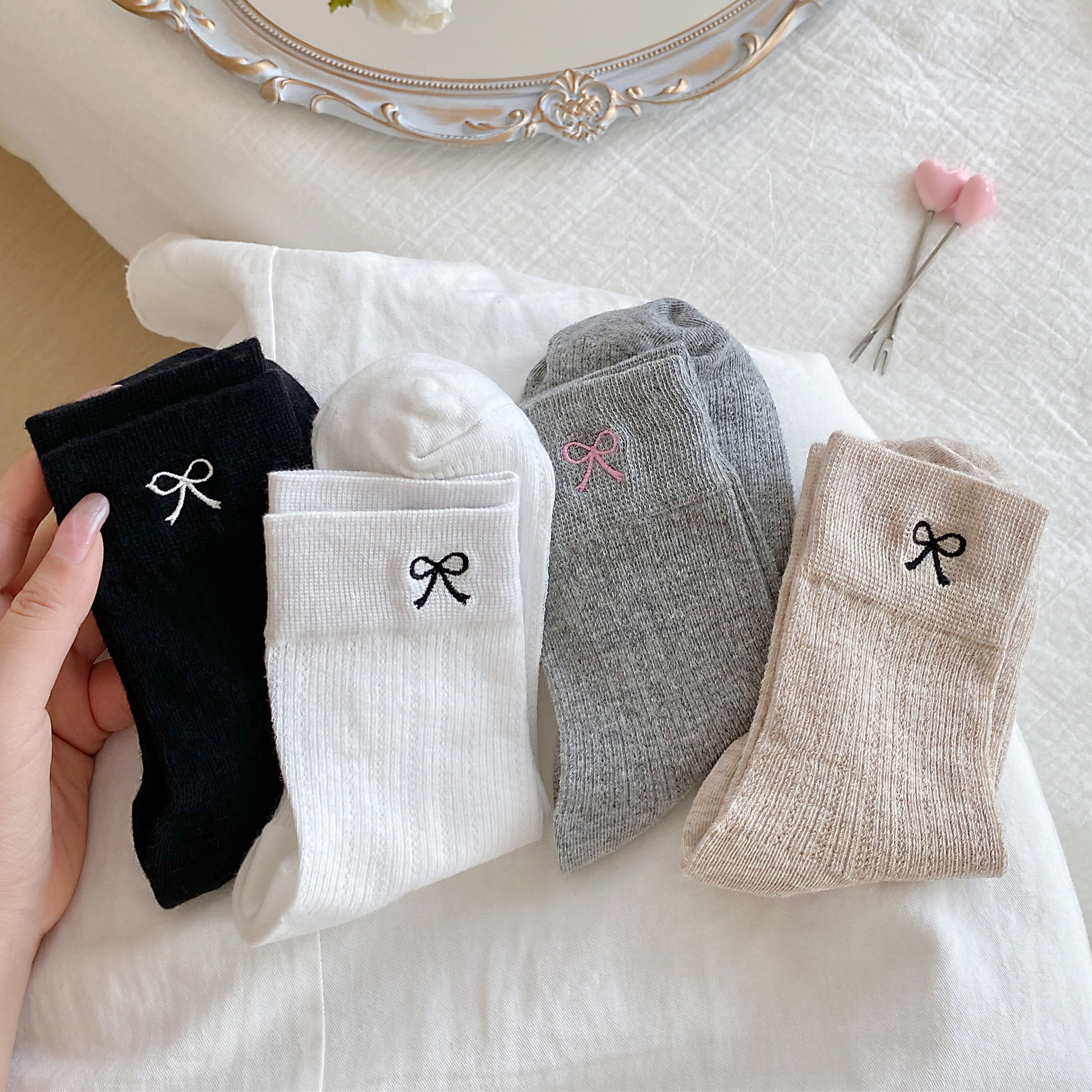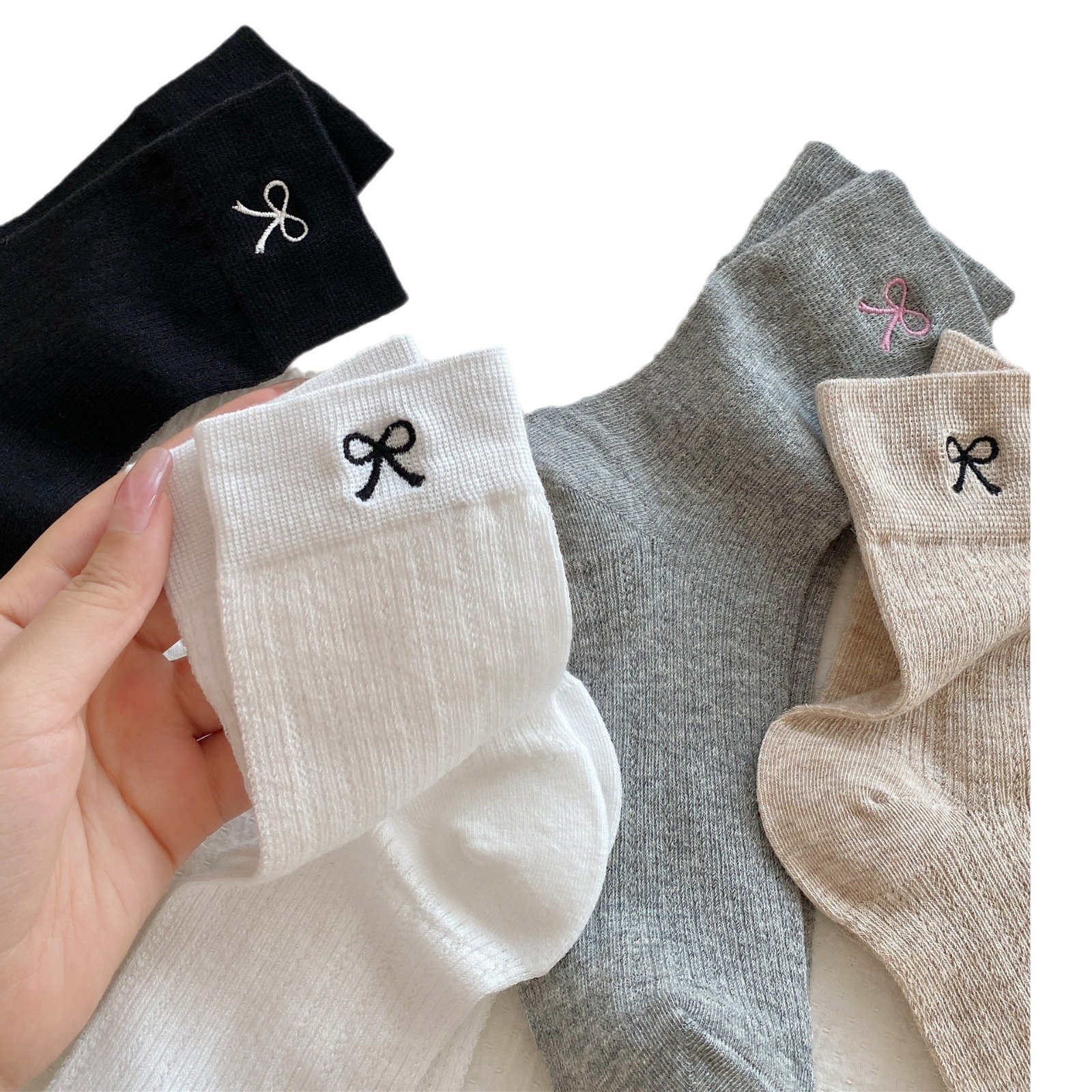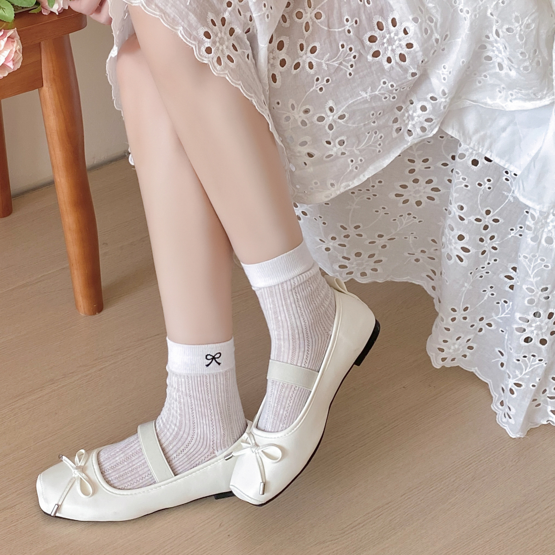 袜子女夏天薄透气罗口网眼刺绣蝴蝶结ins短袜子棉袜芭蕾风女袜子