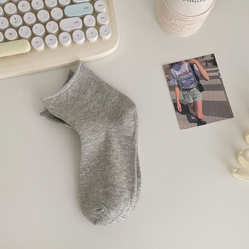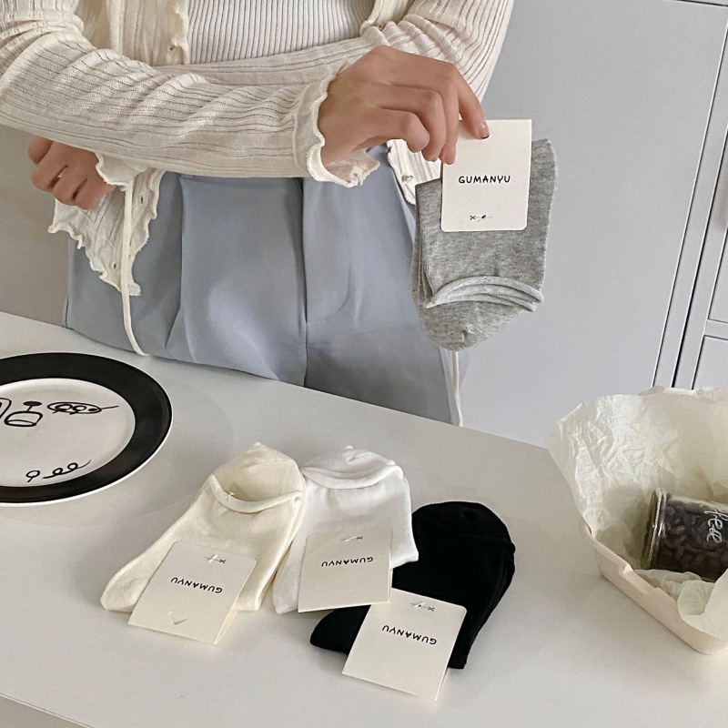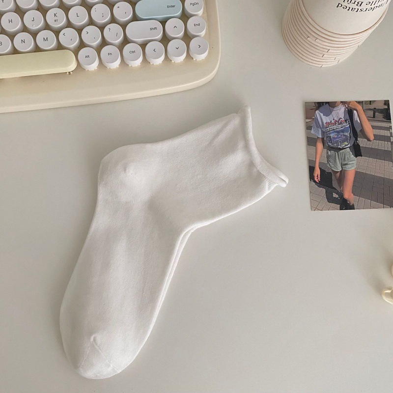 白色袜子女中筒袜春夏季纯棉简约纯色运动韩国日系卷边黑色短筒袜