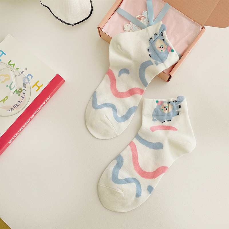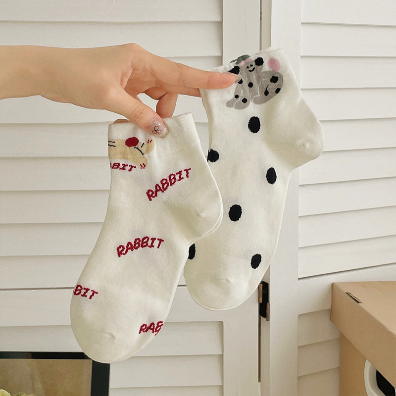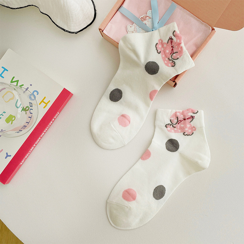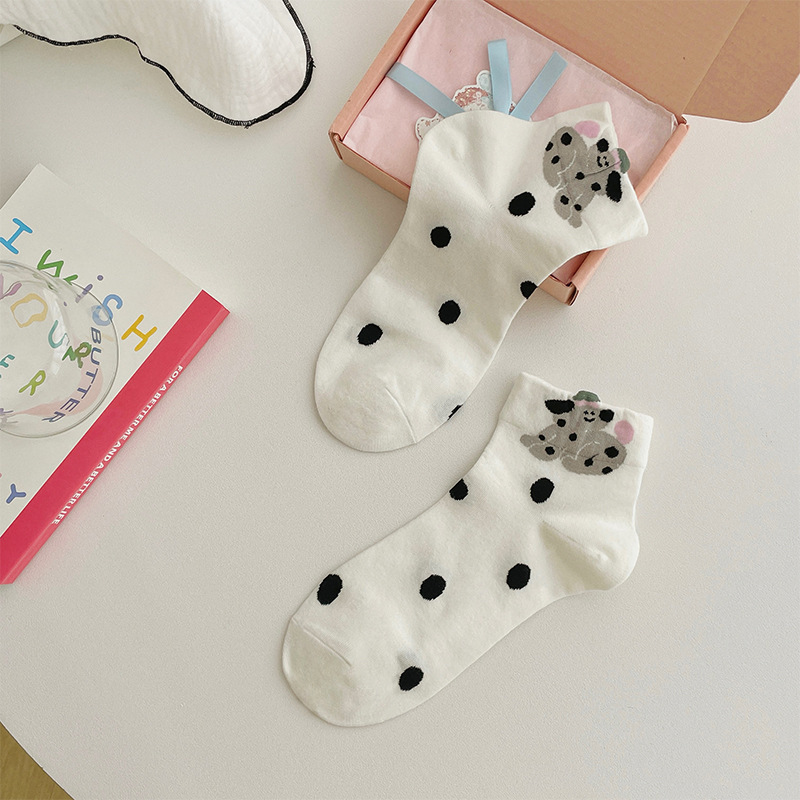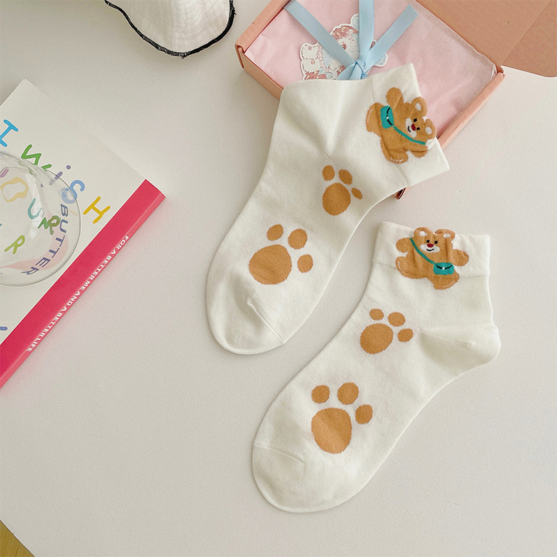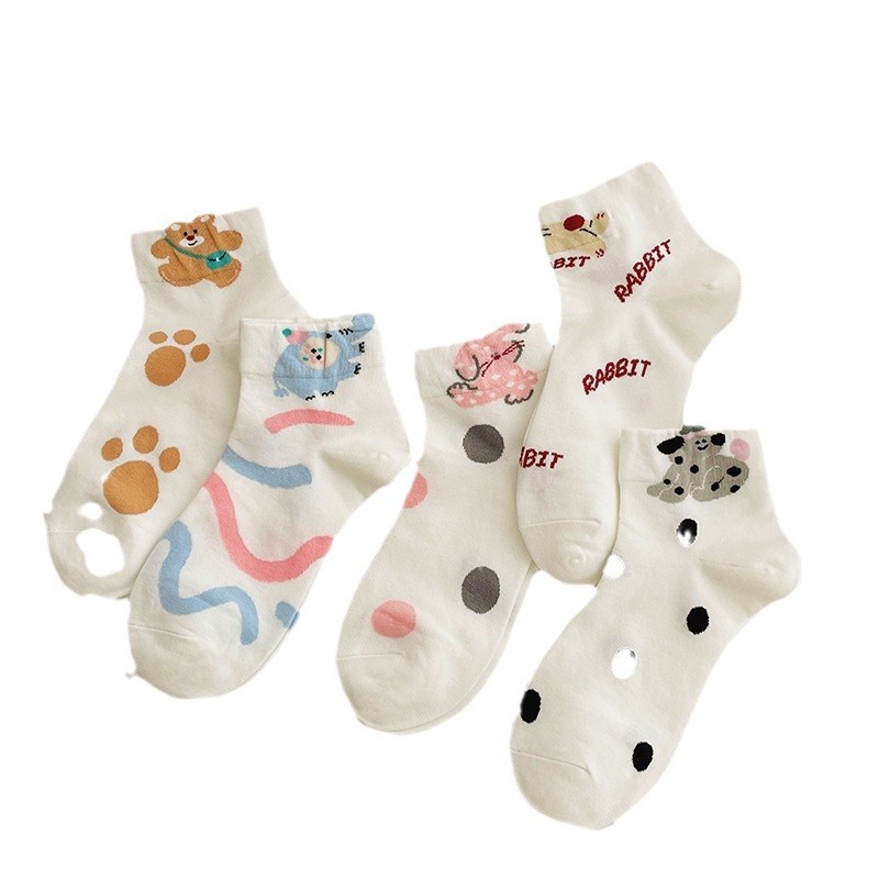 无骨袜子女夏季薄款透气短筒棉袜 ins卡通小狗网红甜美少女短袜