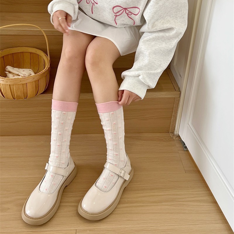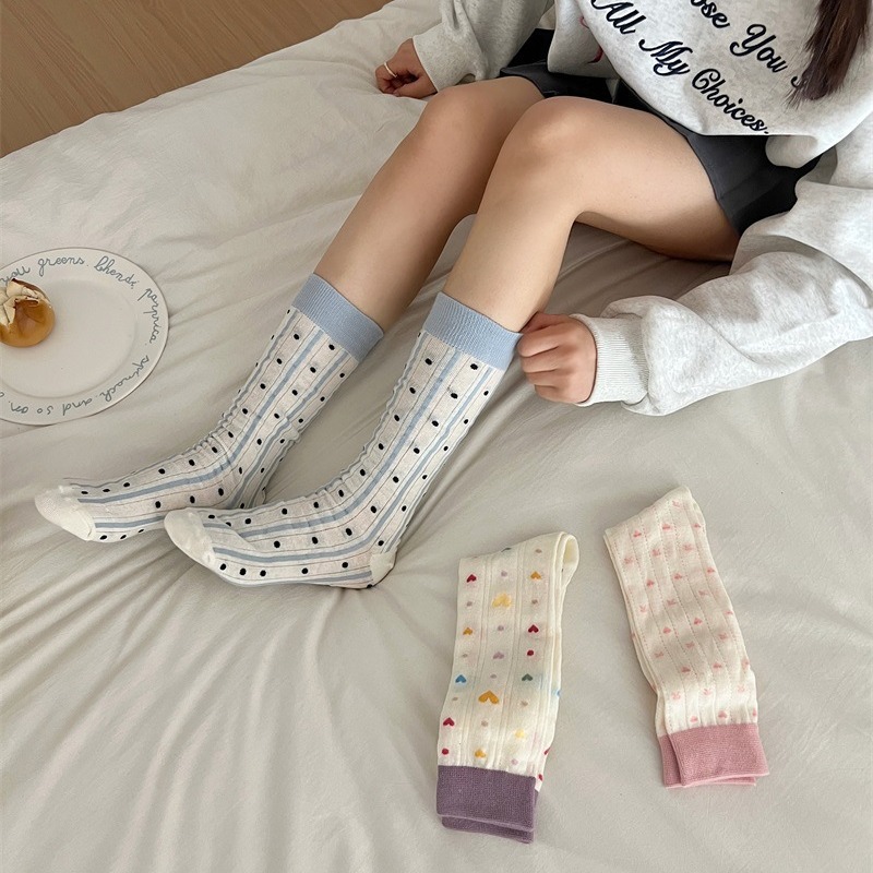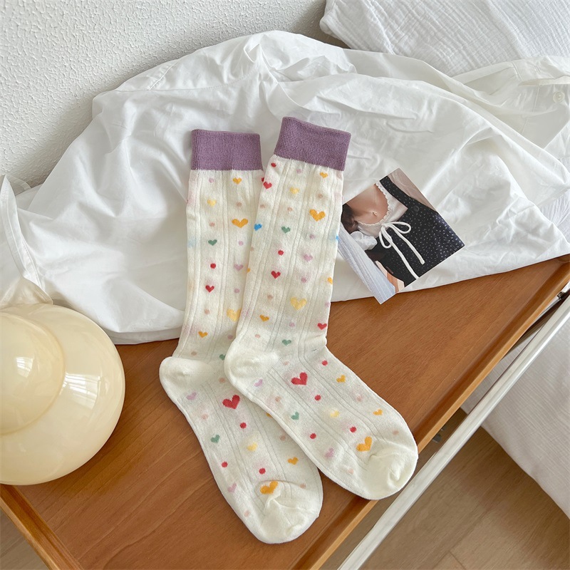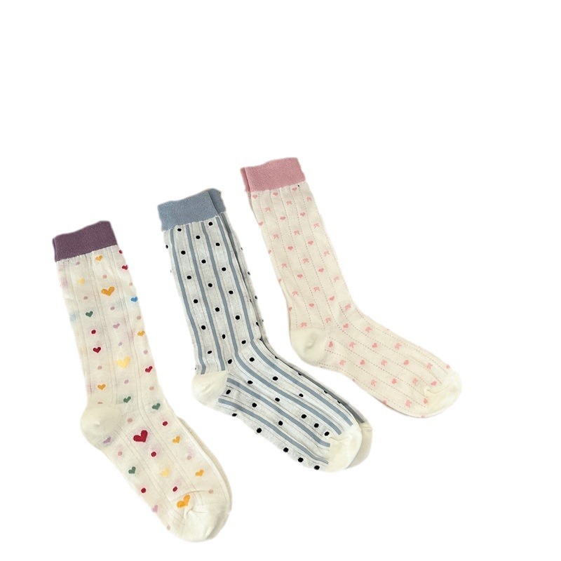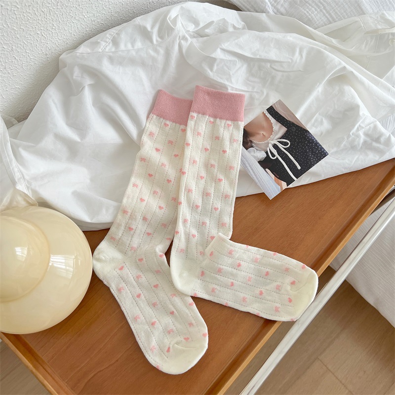 韩国东大门ins款爱心小腿袜夏季薄款袜口撞色坑条透气女中筒袜春