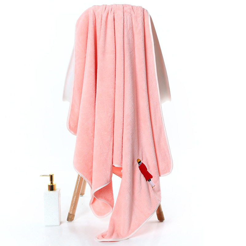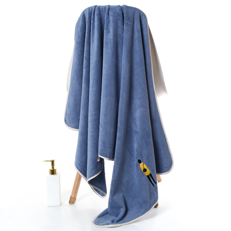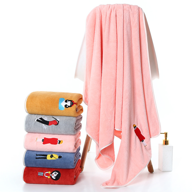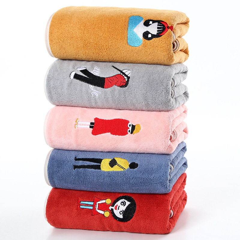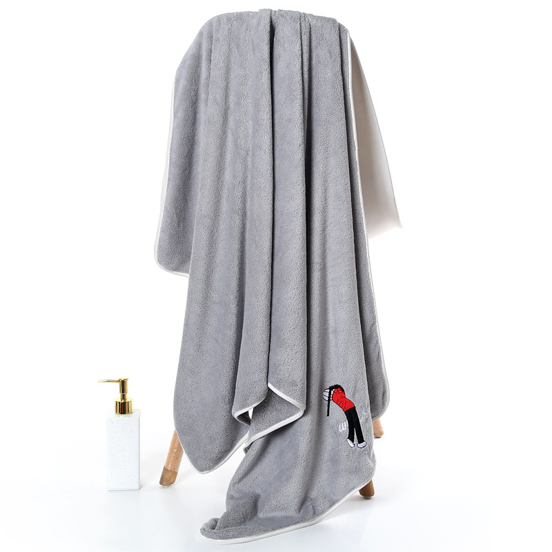 珊瑚绒浴巾70*140加大加厚成人家用柔软吸水洗澡绣花大毛巾