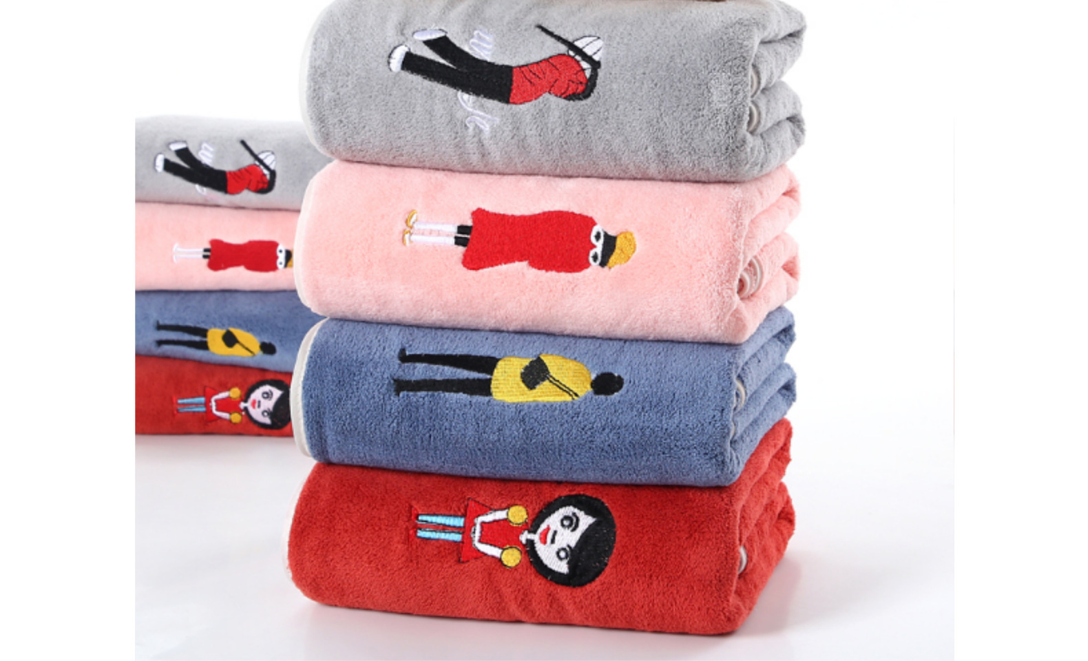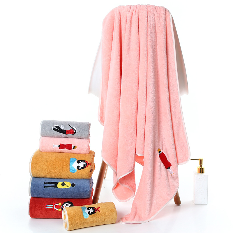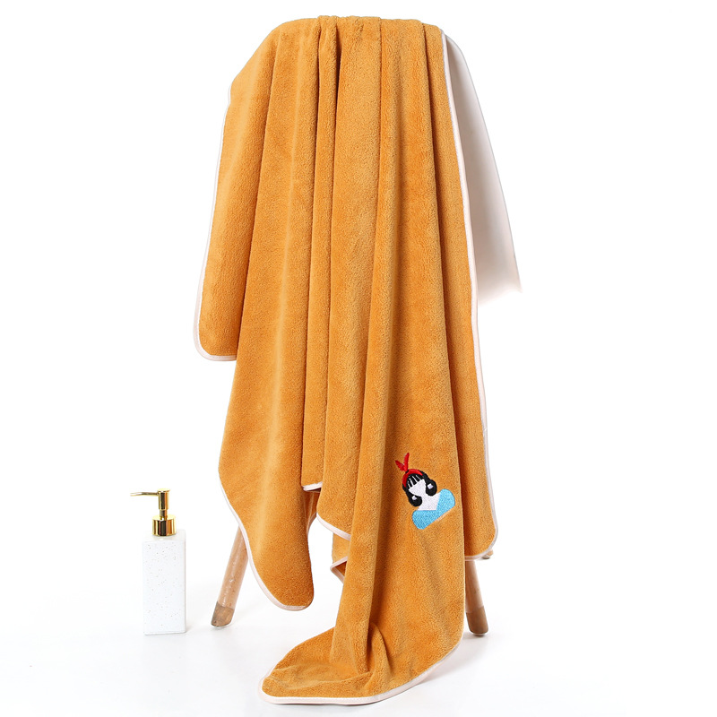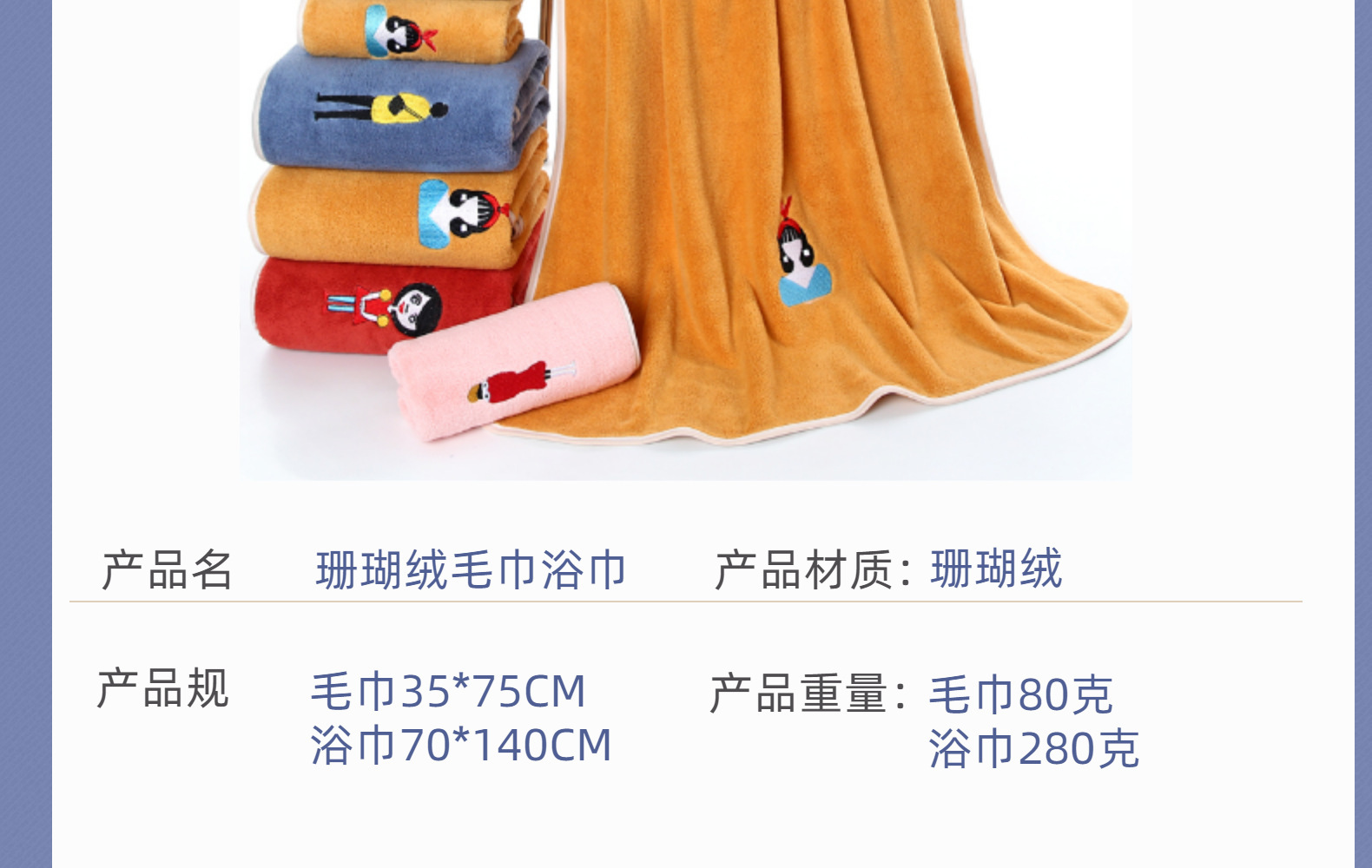 珊瑚绒浴巾70*140加大加厚成人家用柔软吸水洗澡绣花大毛巾