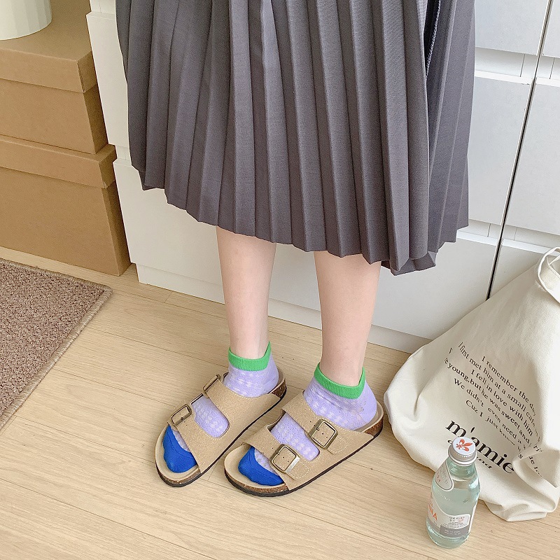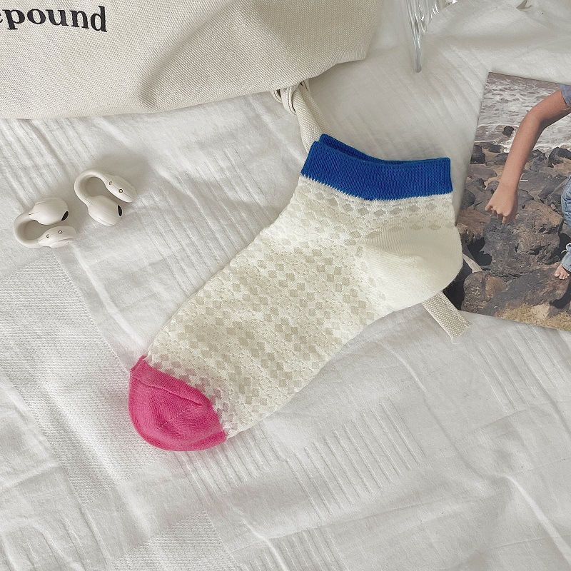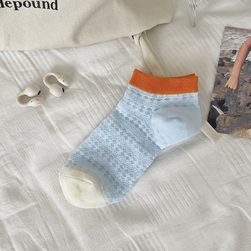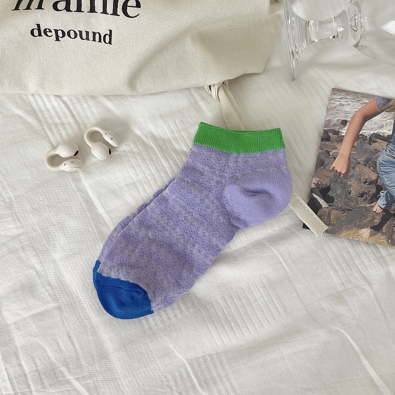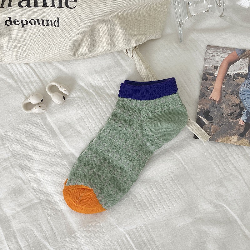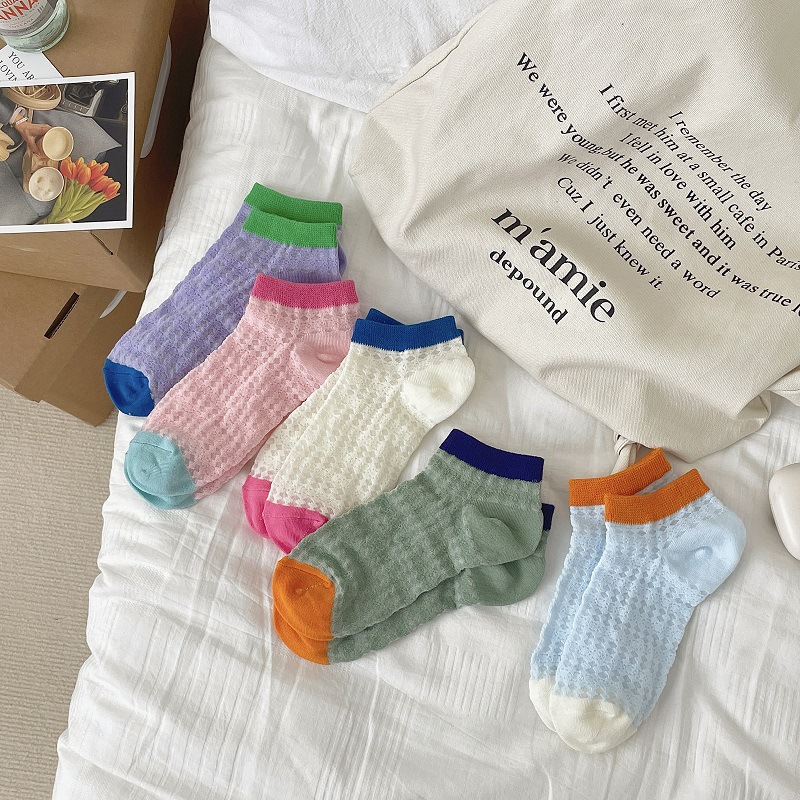 夏天薄款透气袜子男女网眼撞色船袜多巴胺色系小众百搭短筒袜