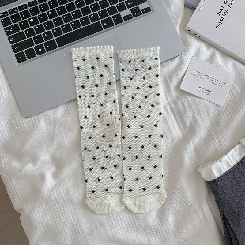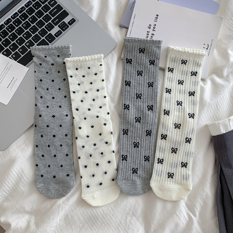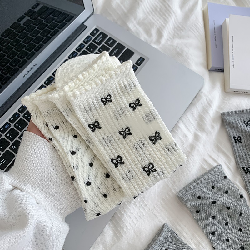 miu系芭蕾风堆堆袜子女中筒袜夏季薄款网眼镂空日系蝴蝶结波点袜