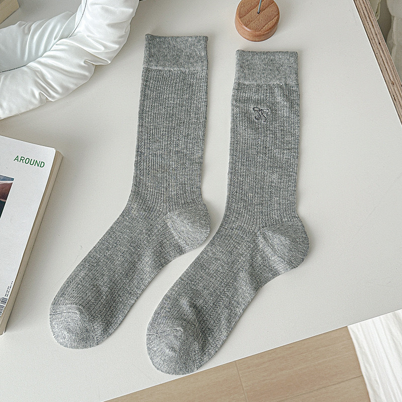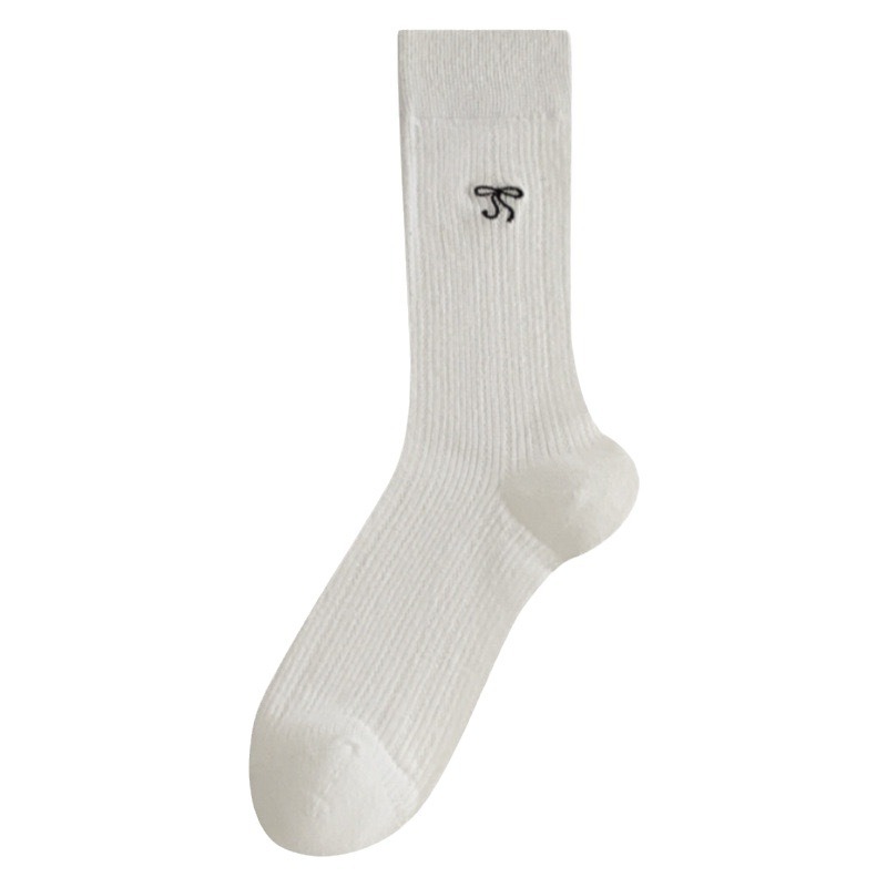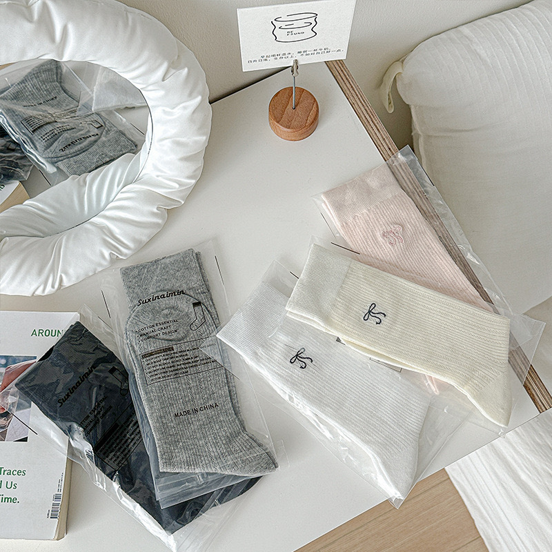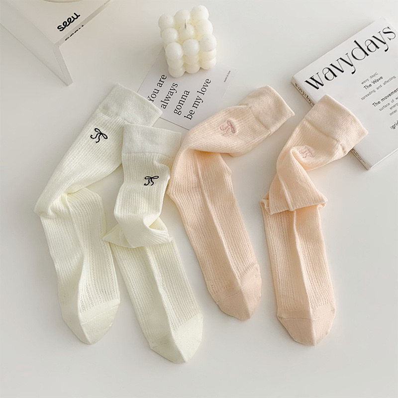 春夏季奶白色薄款JK袜子女中筒袜芭蕾风蝴蝶结镂空堆堆袜百搭纯色