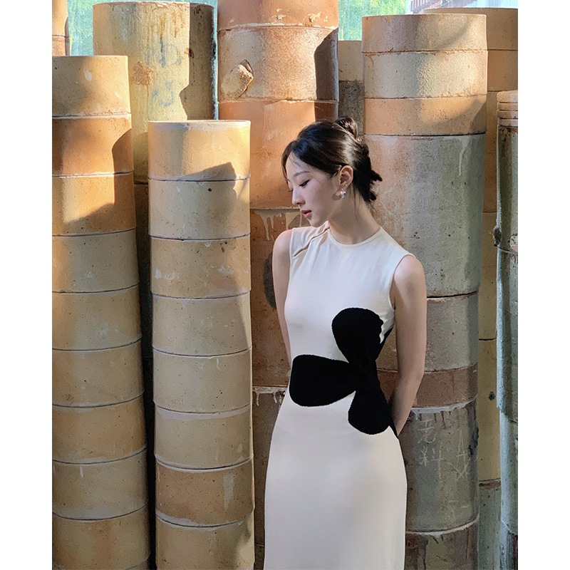 新中式国风改良旗袍包臀长裙春季新款白色花朵无袖背心针织连衣裙