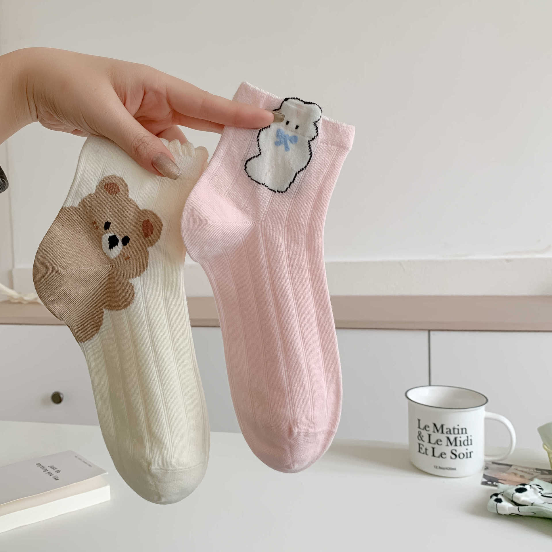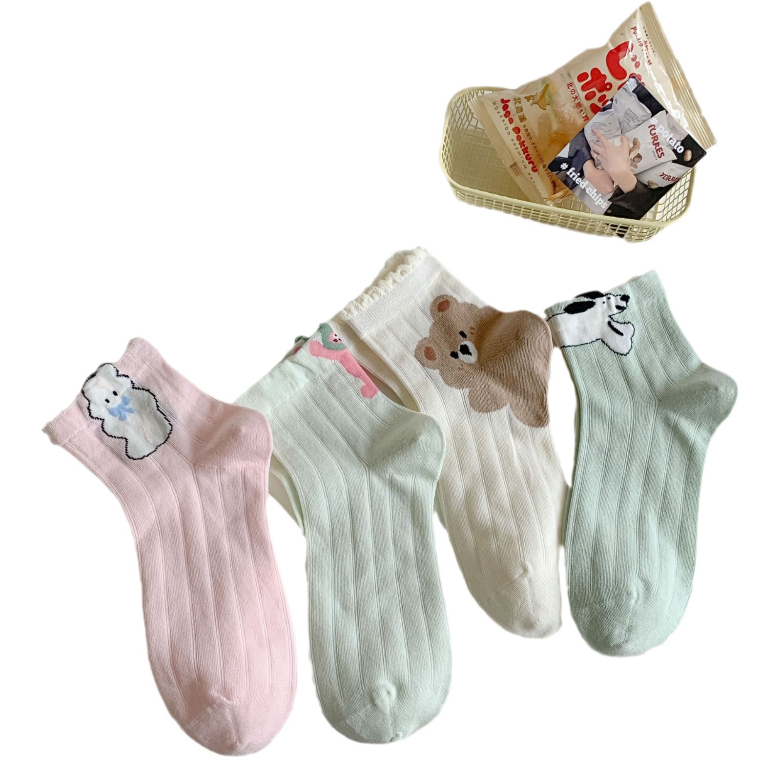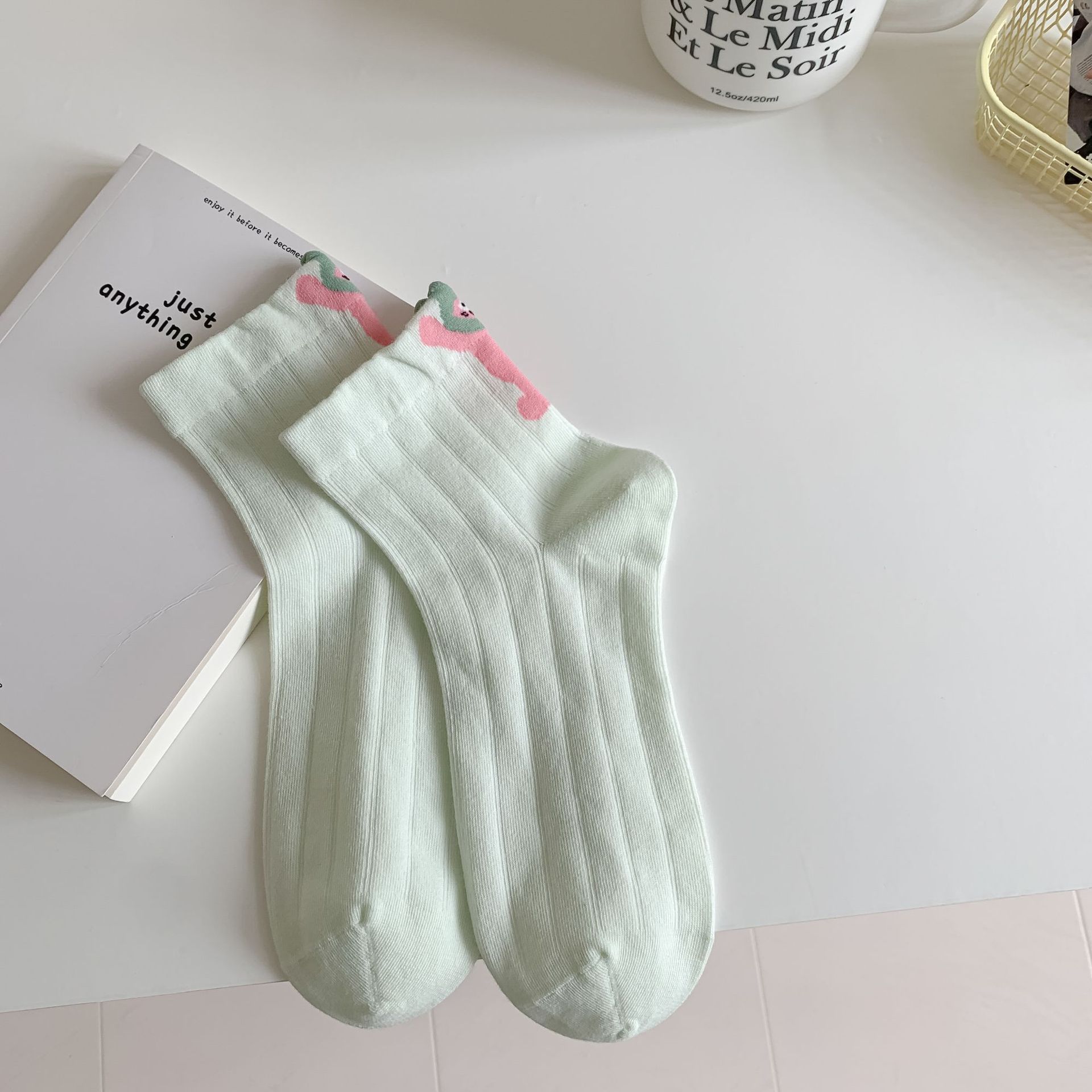 薄荷曼波袜子女夏 立体卡通棉质韩版短筒袜子女 百搭少女袜 船袜