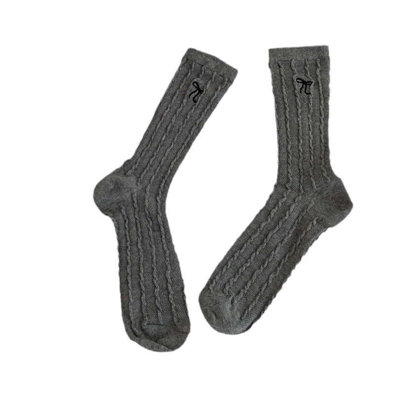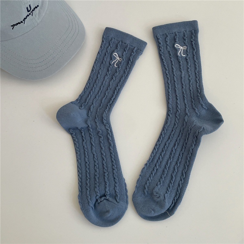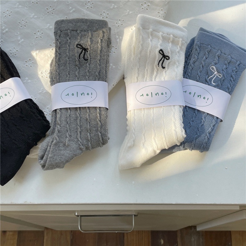 甜妹蝴蝶结镂空网眼袜日系女生奶油色中筒袜学院风纯棉袜子