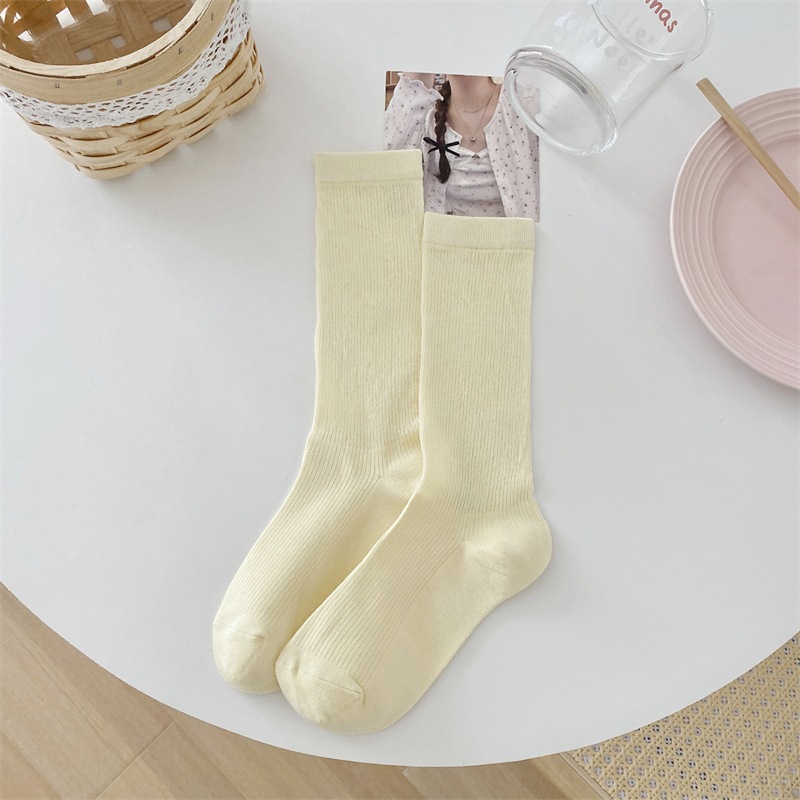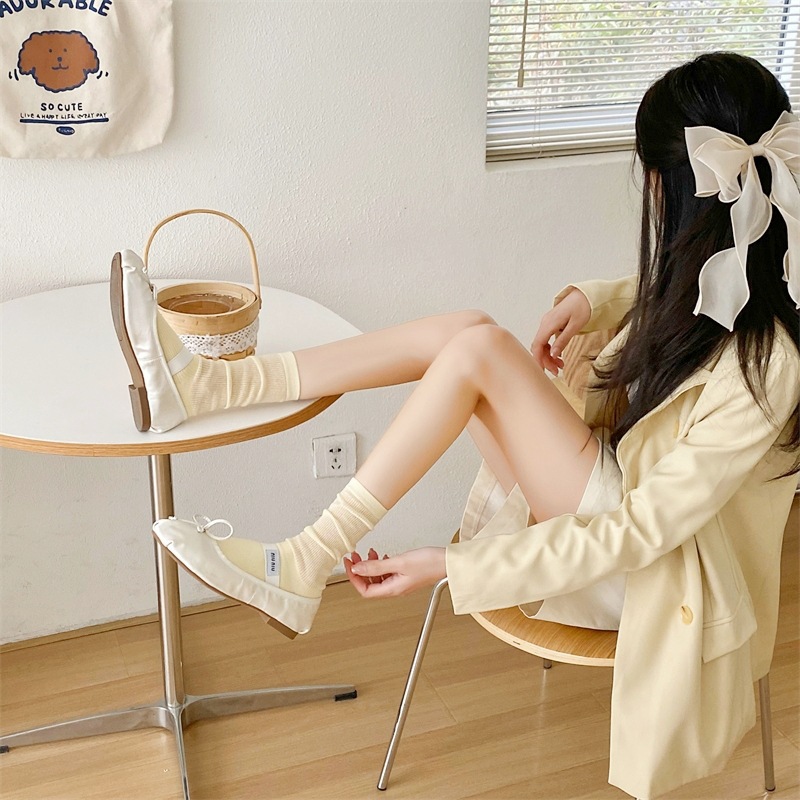 韩国春夏薄款纯色堆堆袜子女镂空卡丝中筒袜ins潮网红日系月子袜