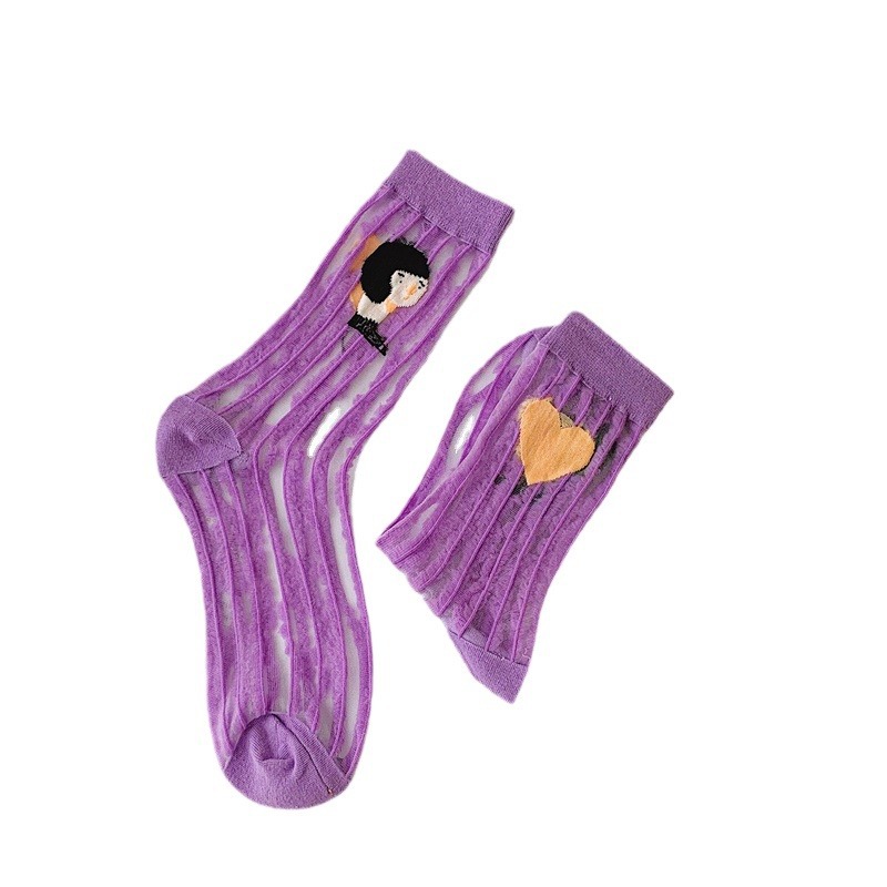 夏季ins超薄卡丝袜子女小红书AB款玻璃丝女袜卡通人头竖条中筒袜