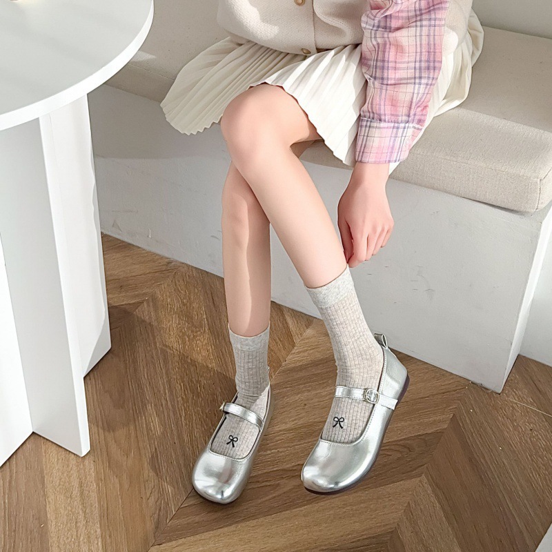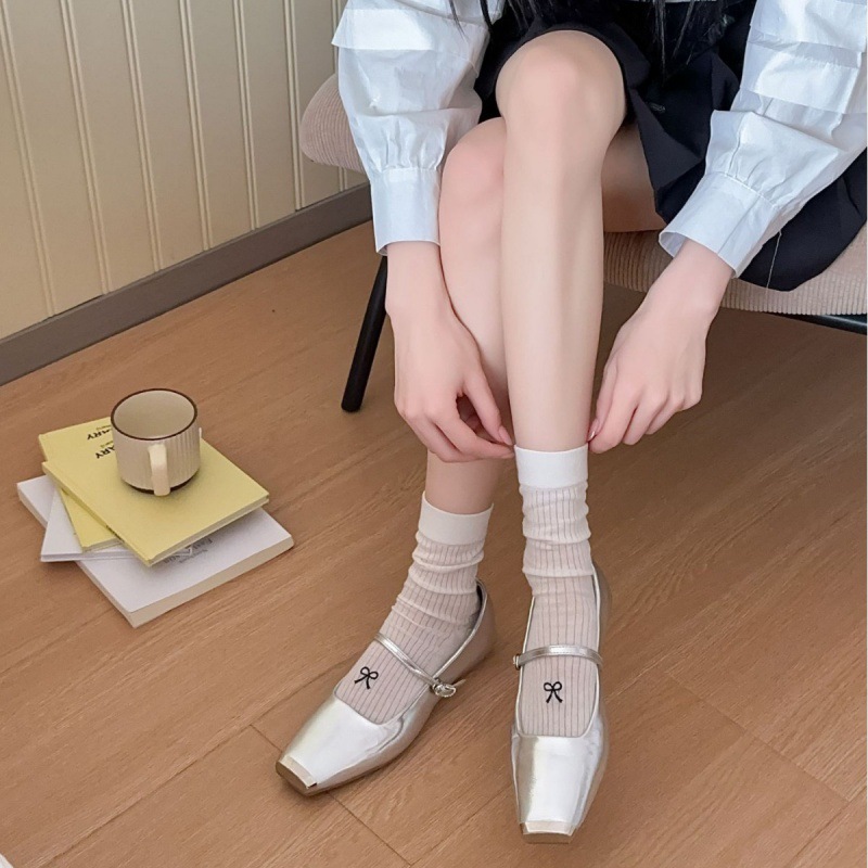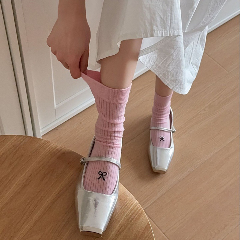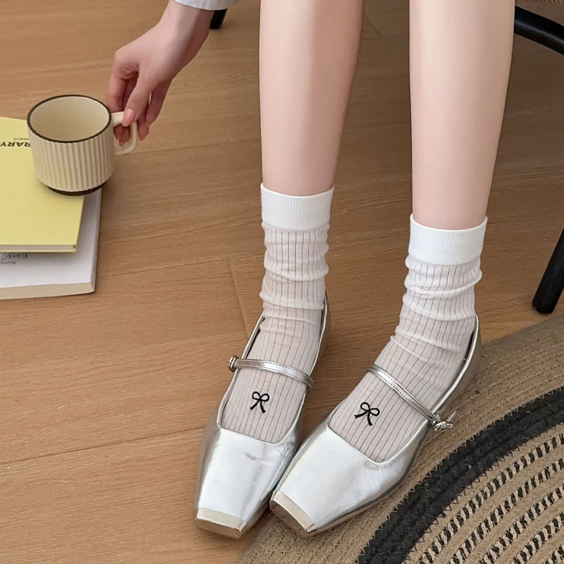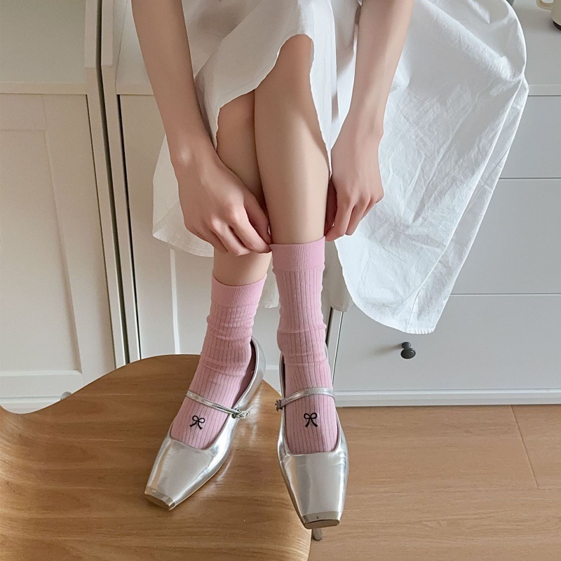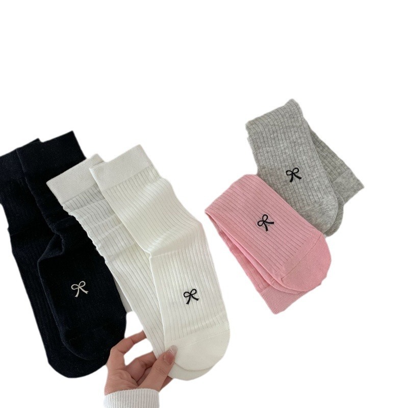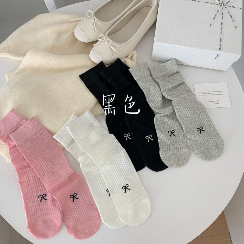 ins同款蝴蝶结春夏韩国潮袜子透气百搭女袜子棉中筒袜黑白长袜子