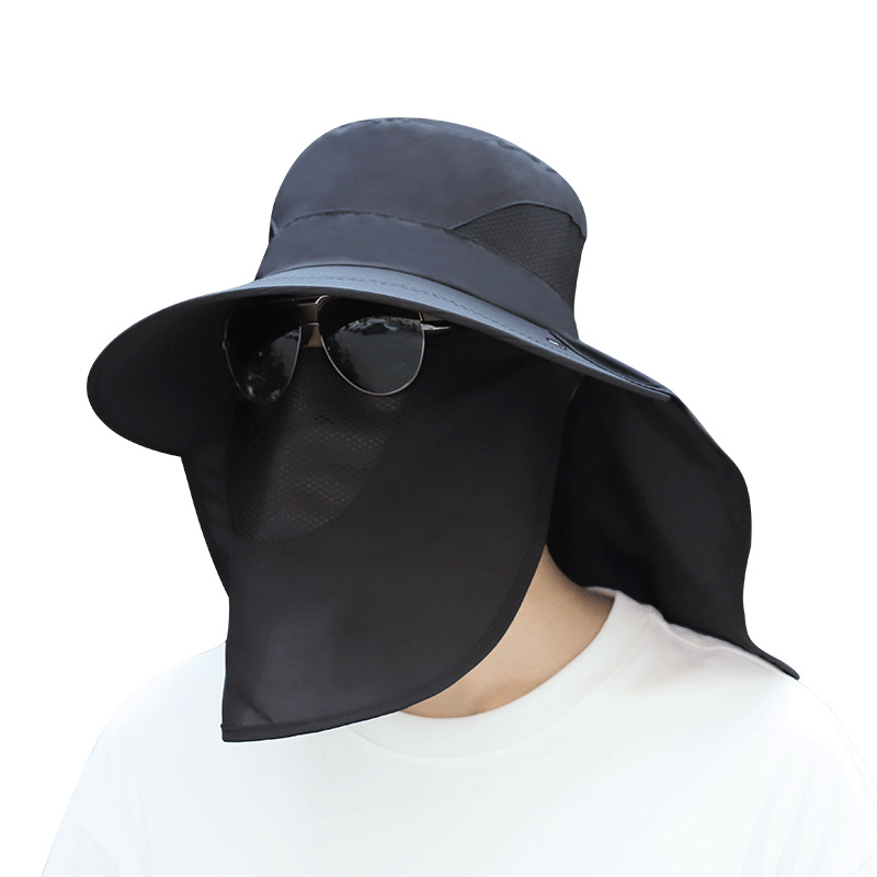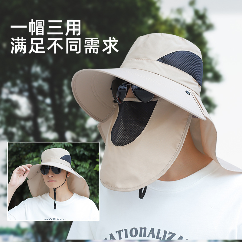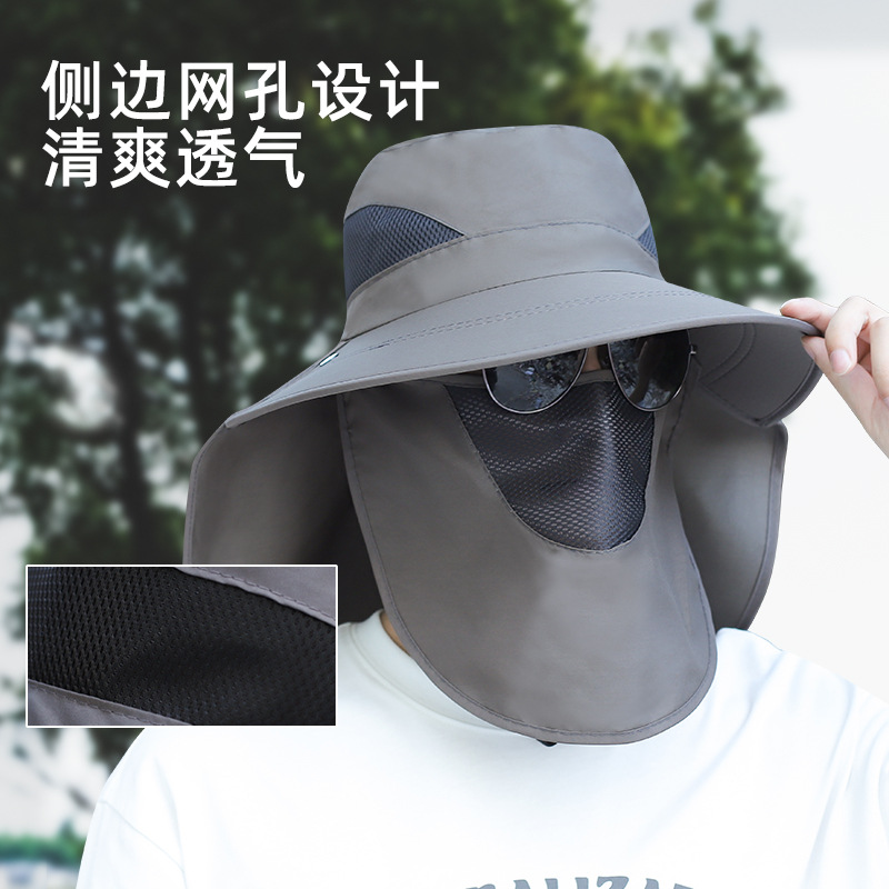 男士夏季遮脸太阳帽防晒户外渔夫帽大檐护颈遮阳帽面罩透气钓鱼帽