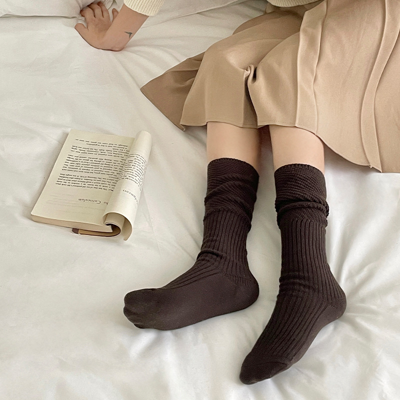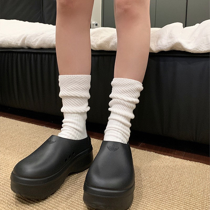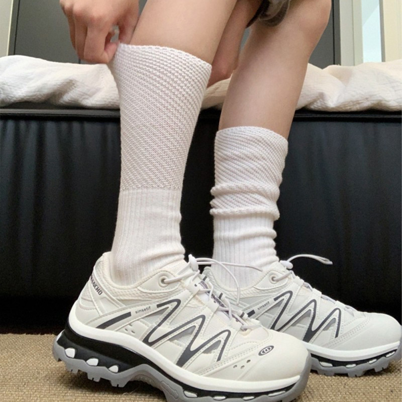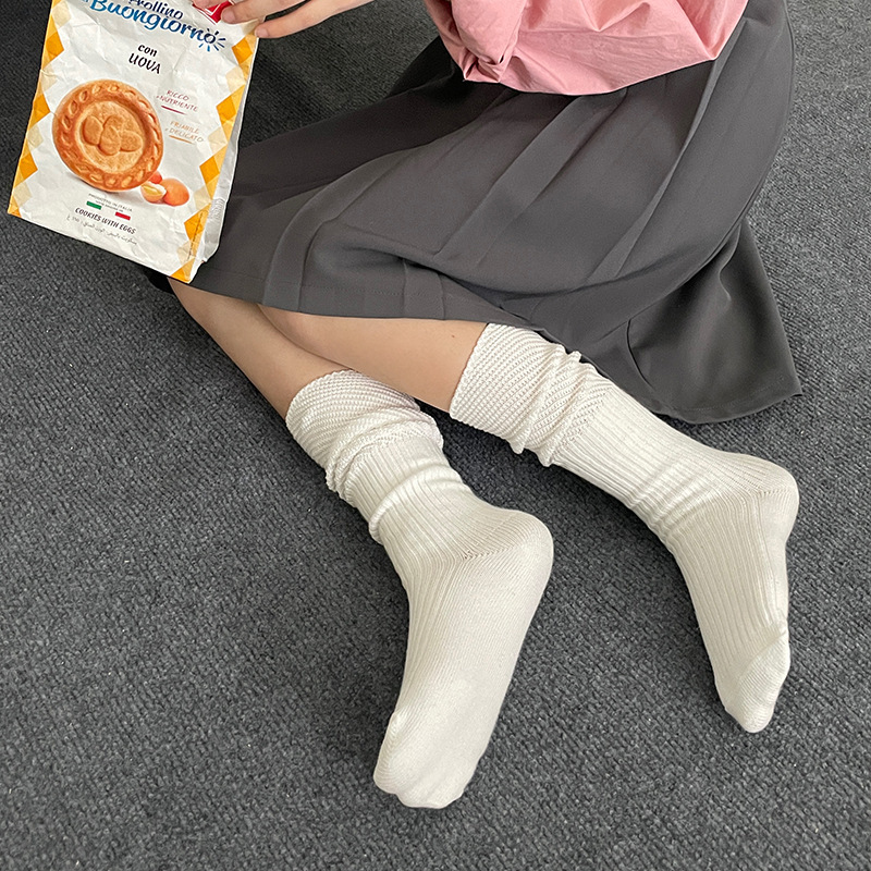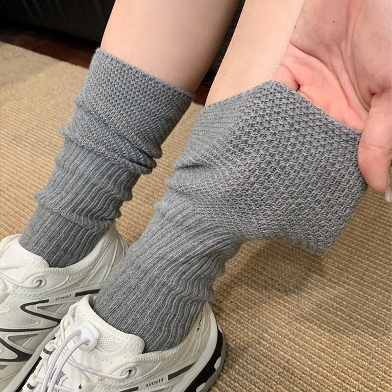 日系ins小腿袜颗粒拼纱针织纯棉袜子拼接透气网眼bella风堆堆袜女
