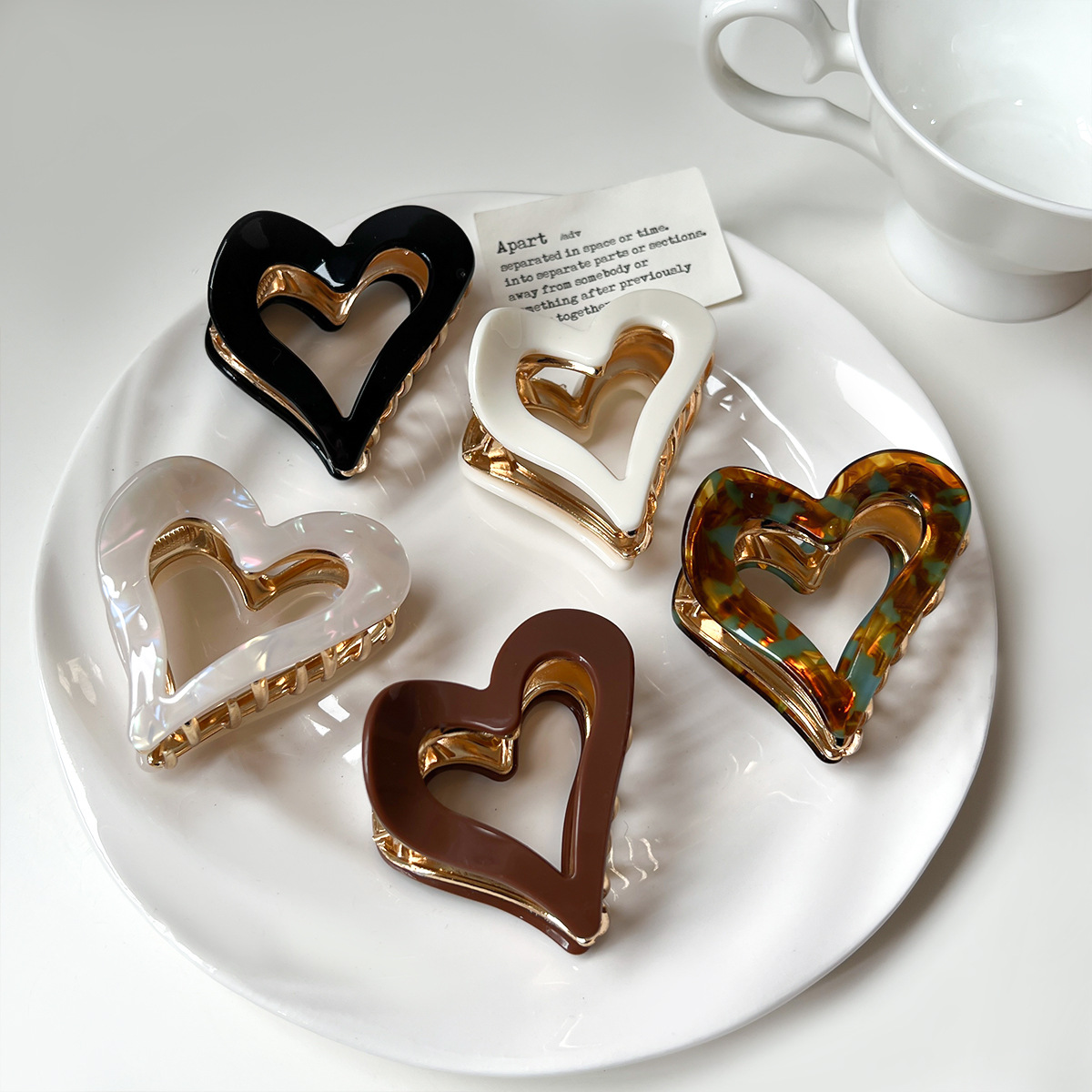 韩版高级感金属鲨鱼夹简约爱心醋酸百搭外出后脑勺盘发抓夹