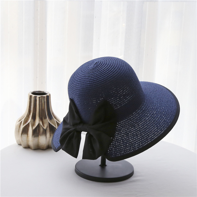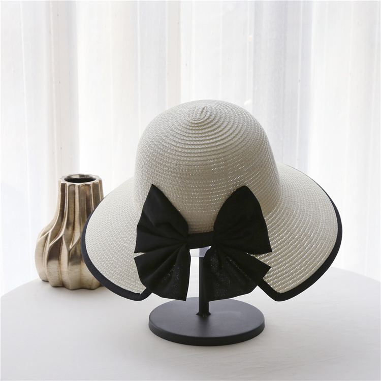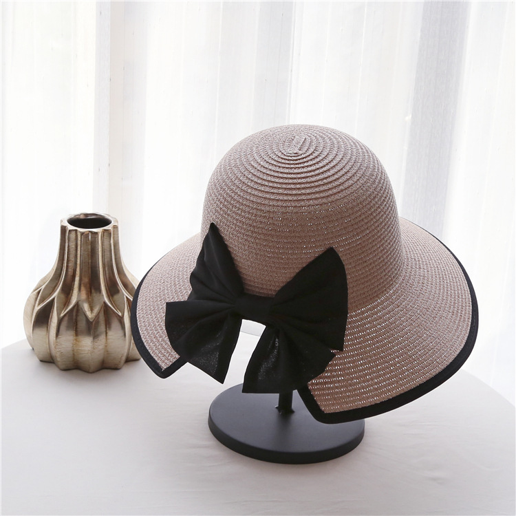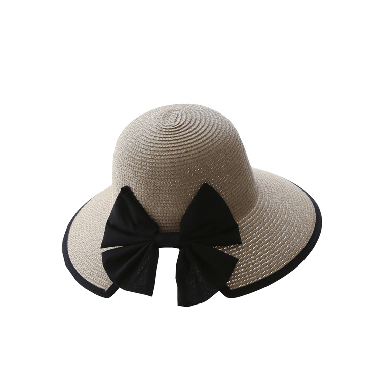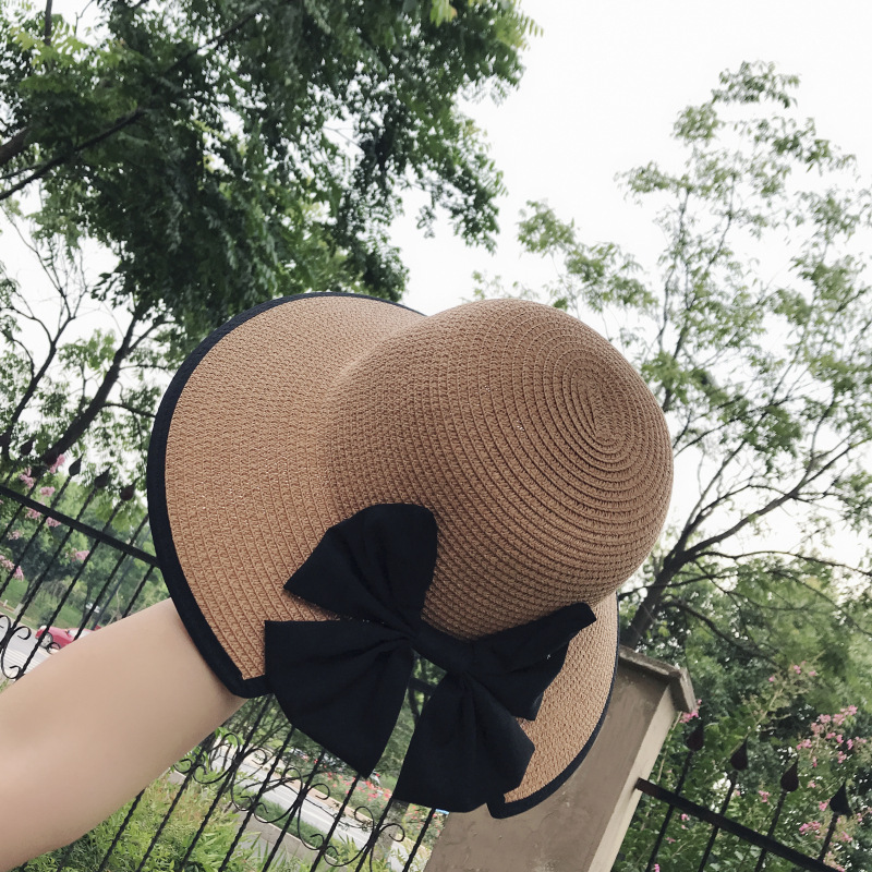 小草帽女夏天海边沙滩帽度假韩版百搭日系小清新蝴蝶结防晒遮阳帽