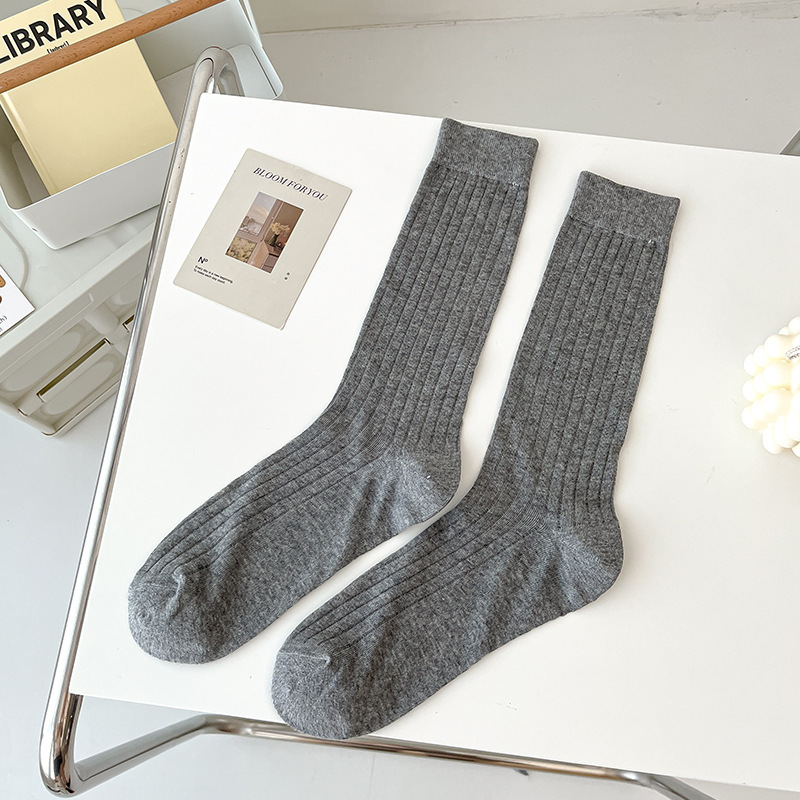 竖条袜子男女夏季薄款ins潮灰色走秀款jk堆堆袜长筒芭蕾中筒