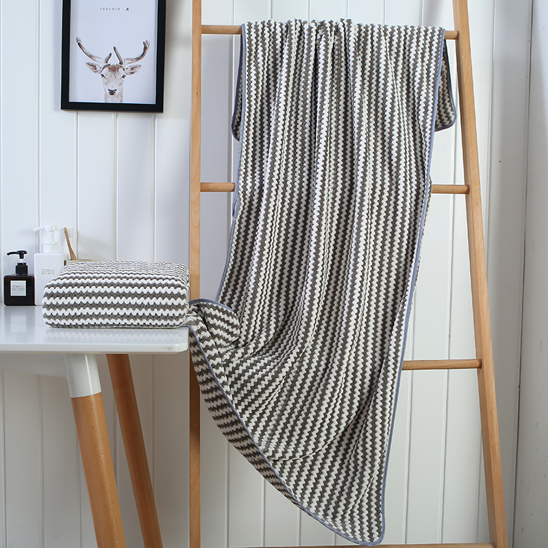 珊瑚绒浴巾 成人儿童婴幼儿大毛巾 阳离子条纹沙滩浴巾