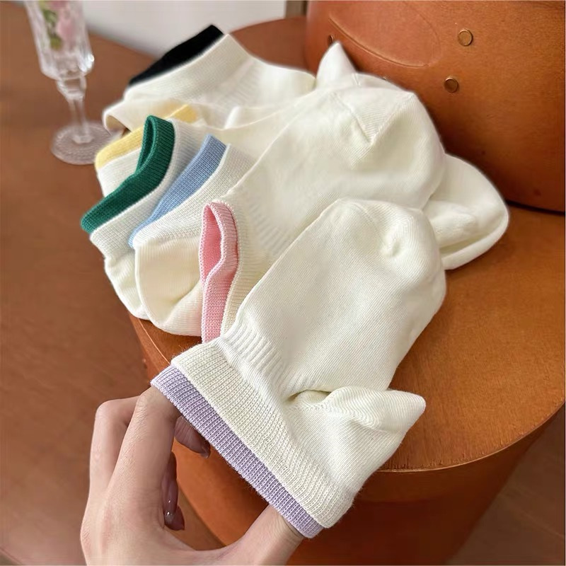 夏季船袜女浅口隐形袜撞色袜口短袜韩系甜美风低帮袜棉