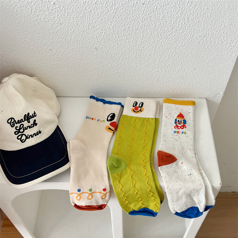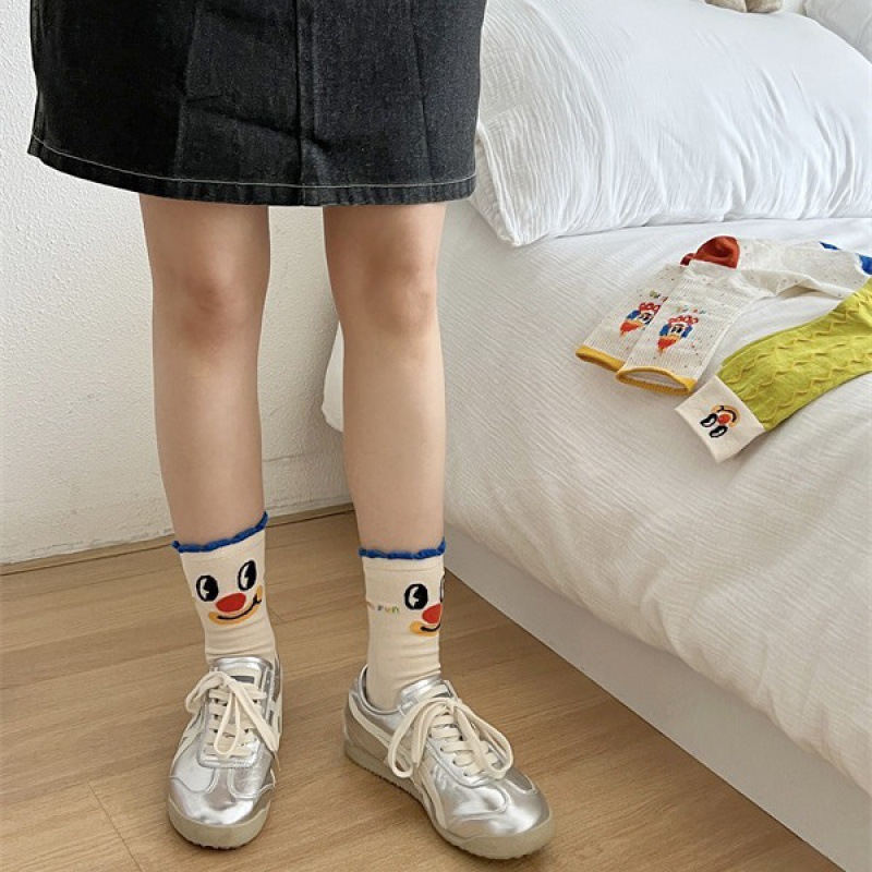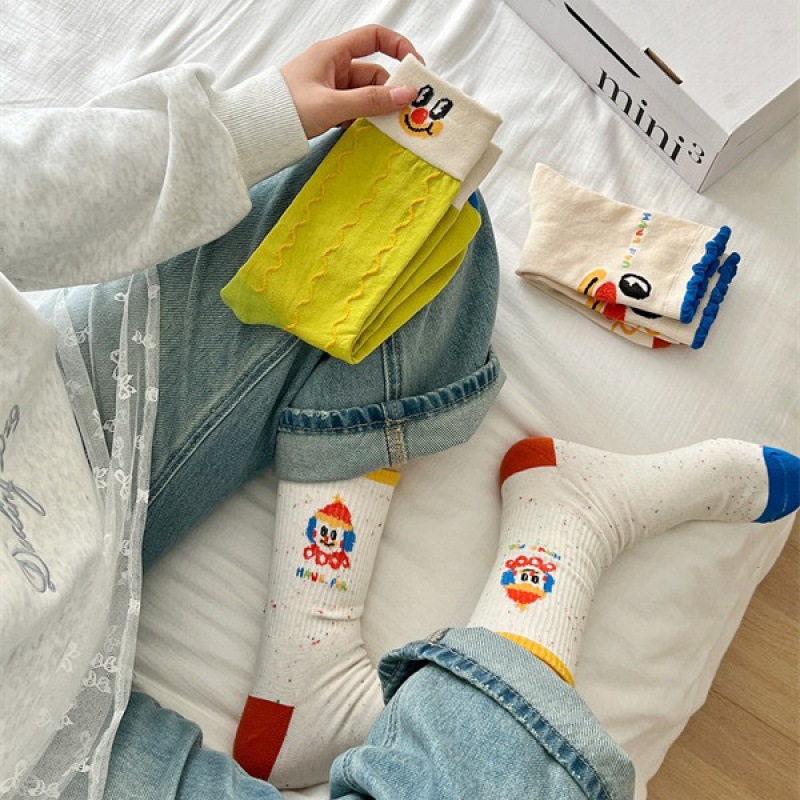 小丑系列搞怪可爱卡通中筒袜潮网红长筒袜学院风日系个性漫画棉袜