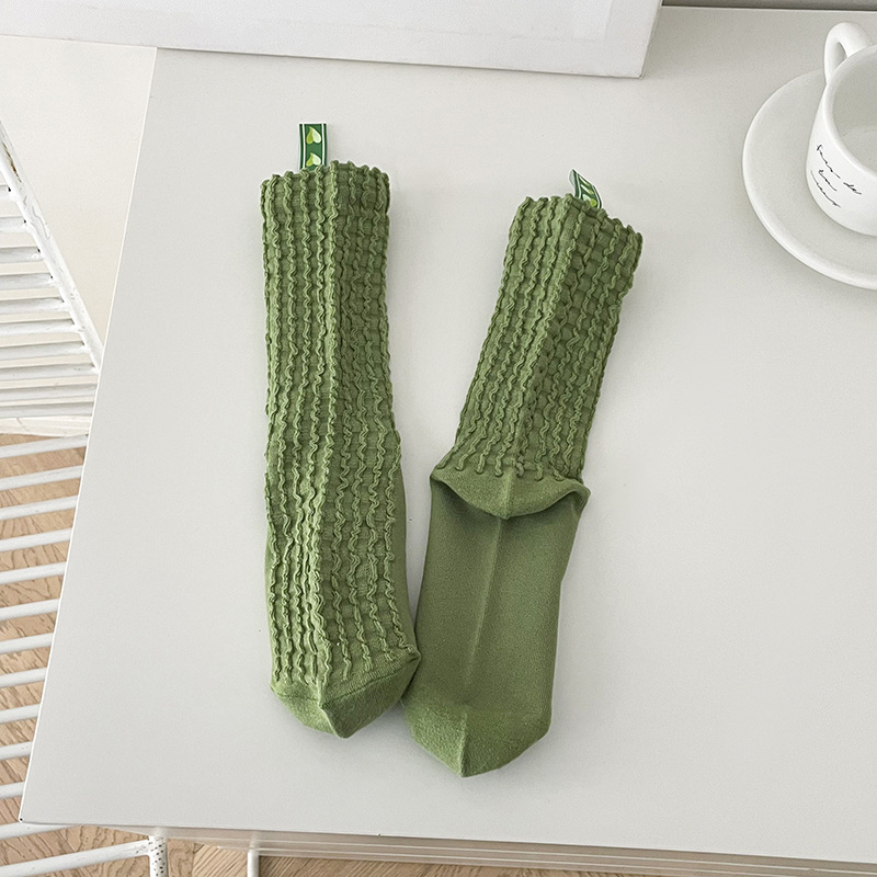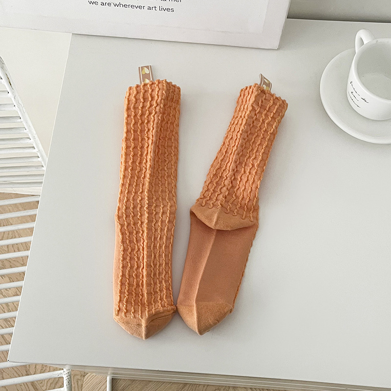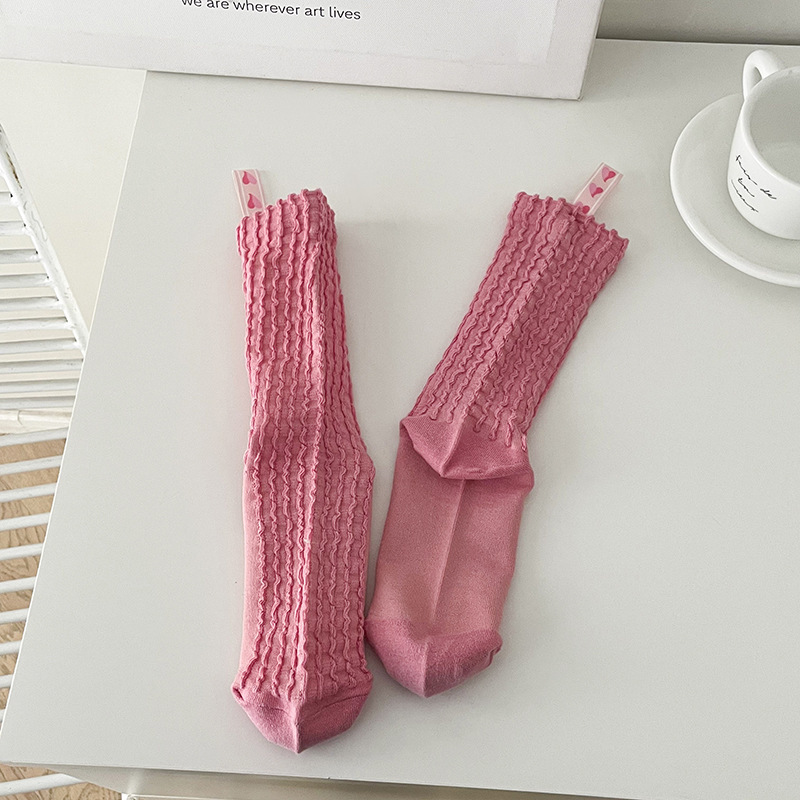 韩国东大门立体浮雕男女纯色中筒袜后跟爱心飘带袜潮袜