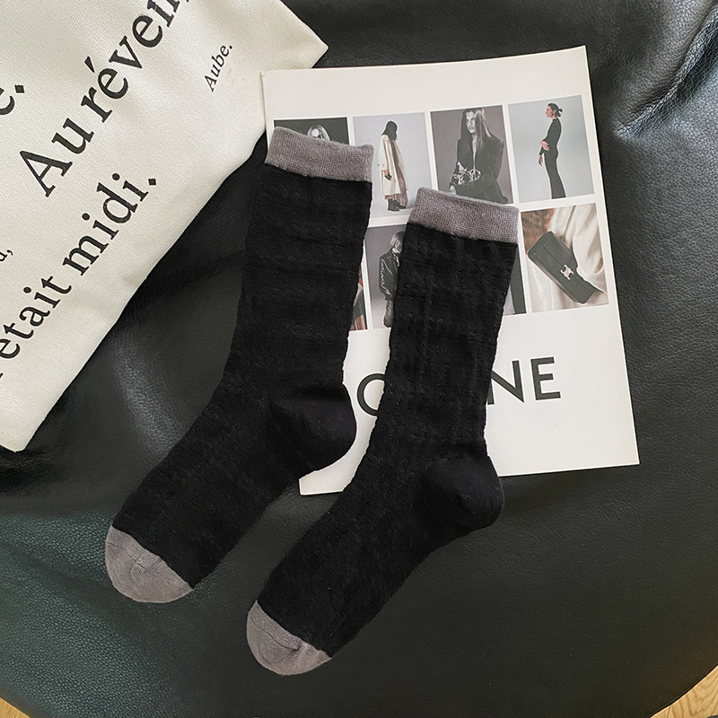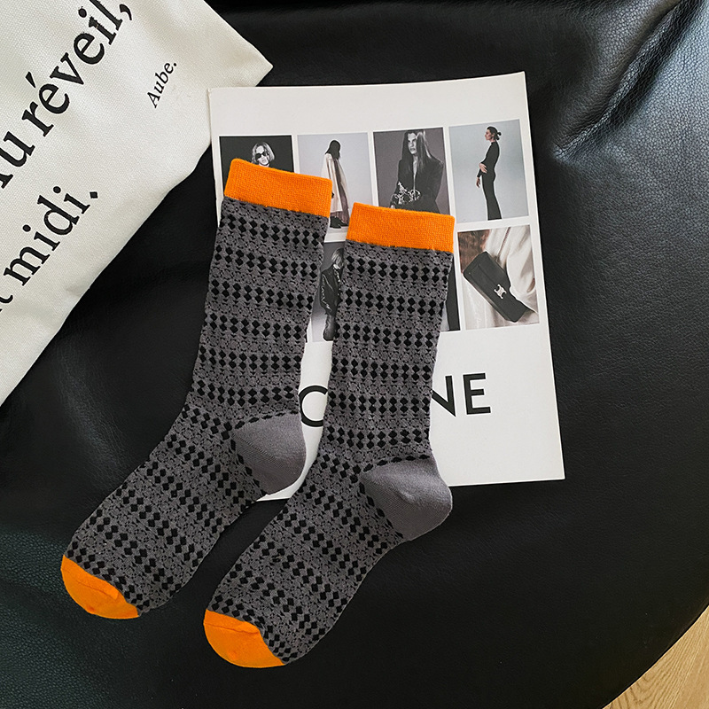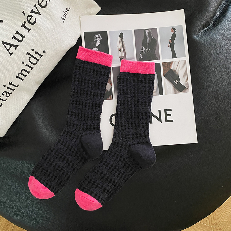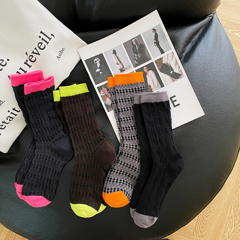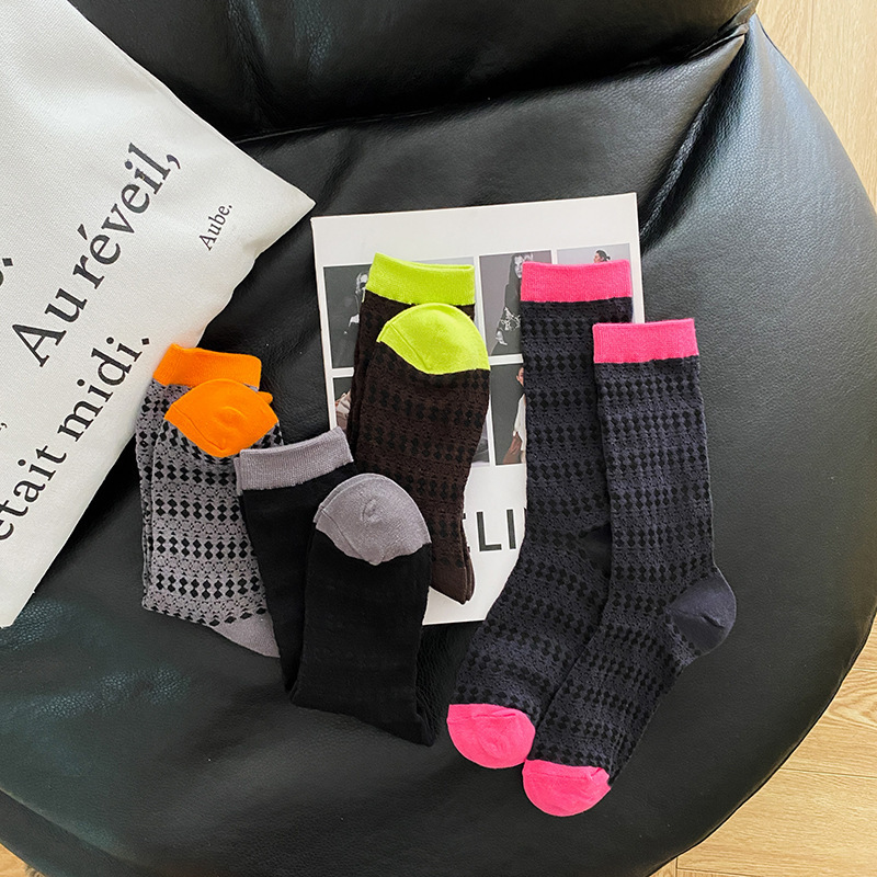 夏季超薄镂空网眼棉袜拼色复古 卡丝袜网红款外穿中筒袜