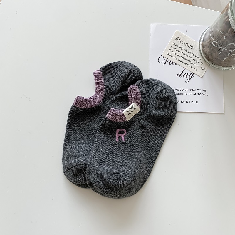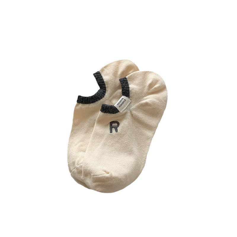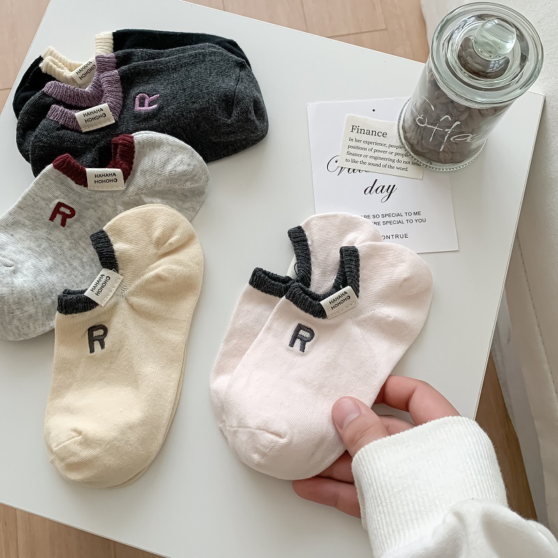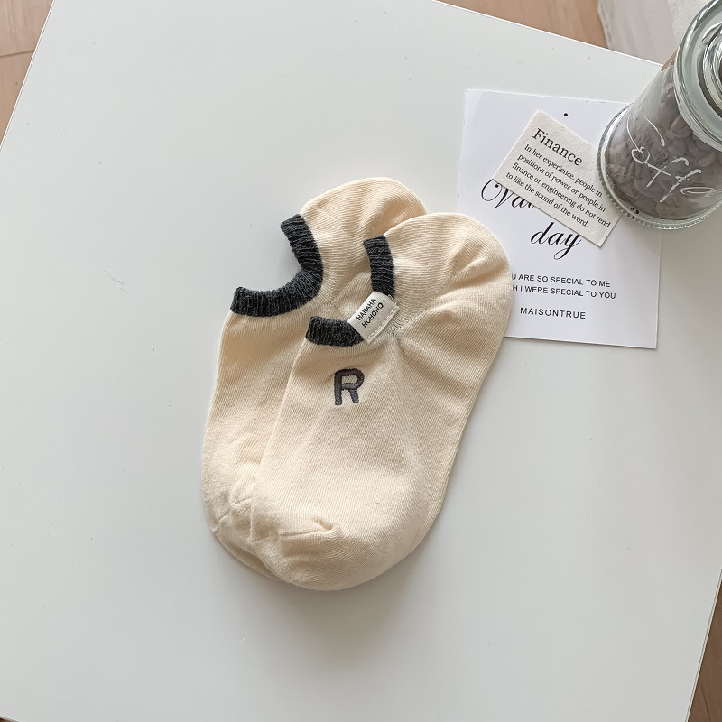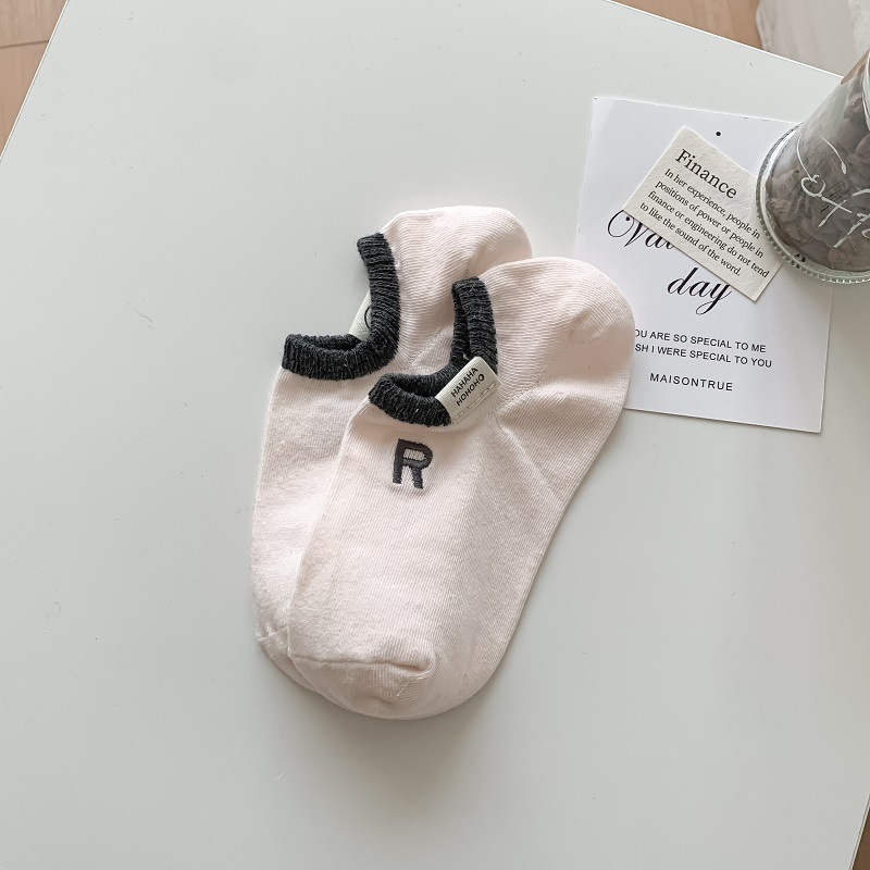 东大门夏季白袜子女网红款日系标签刺绣字母R浅口不掉跟隐形船袜