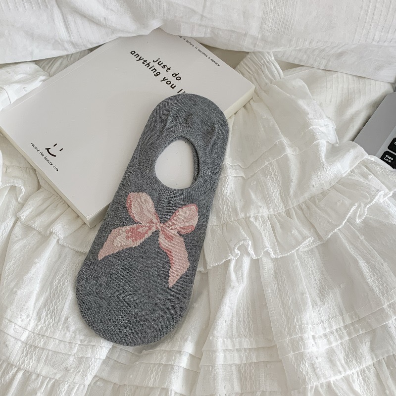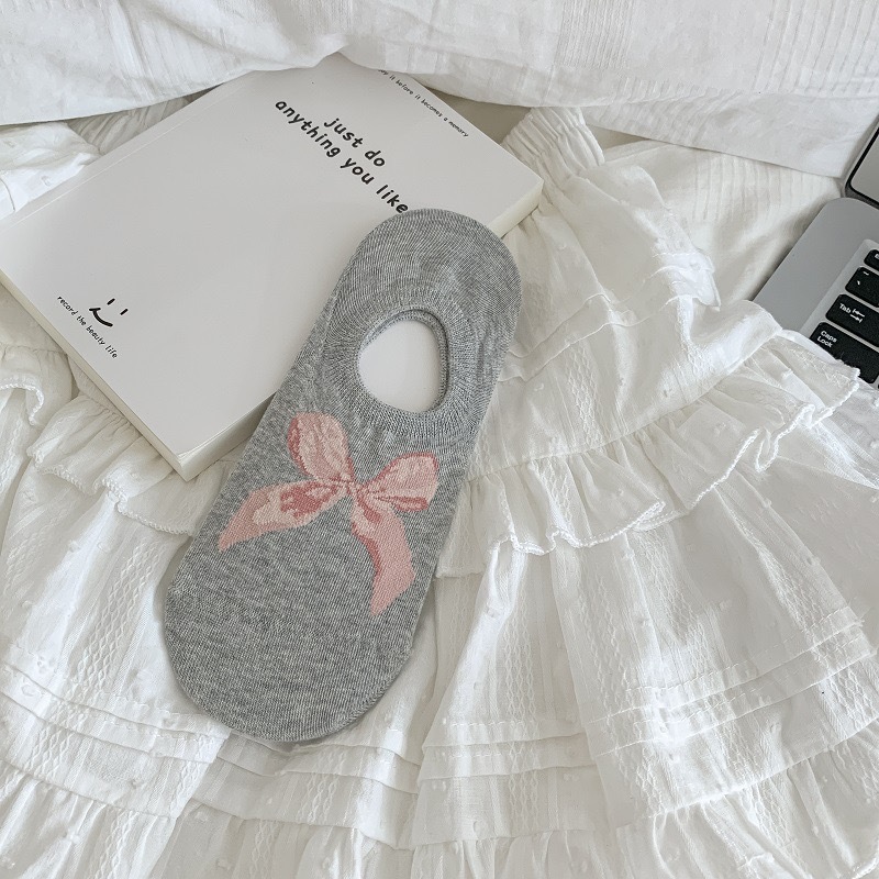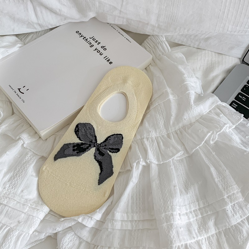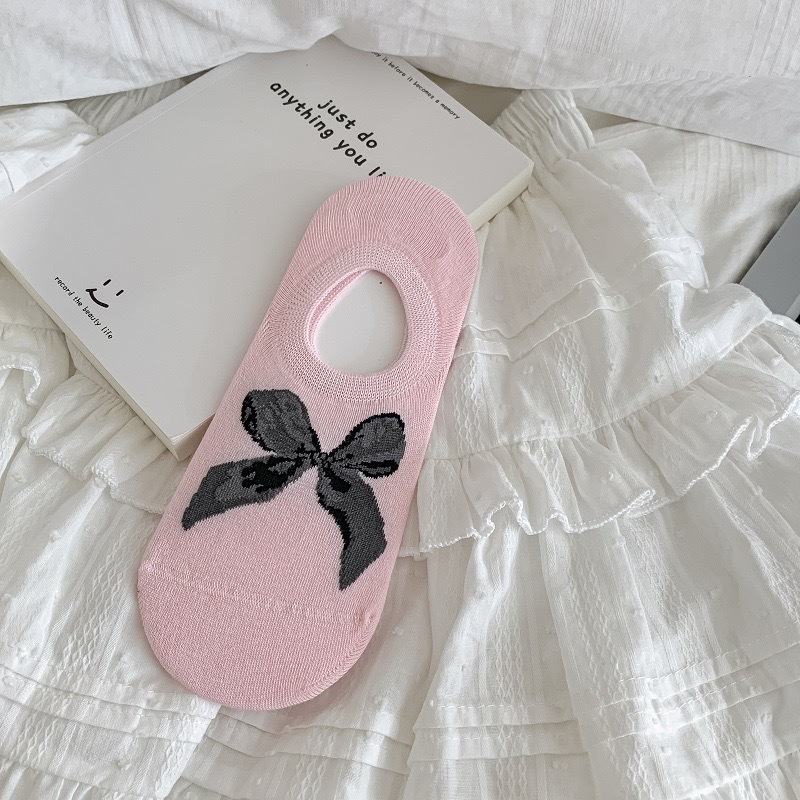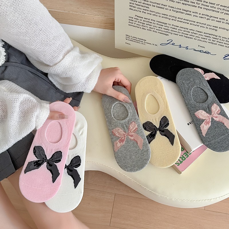 夏季船袜女彩色蝴蝶结隐形袜防滑不掉跟女士短袜棉