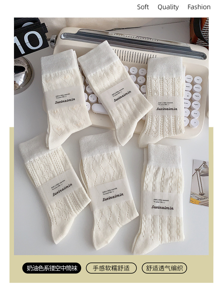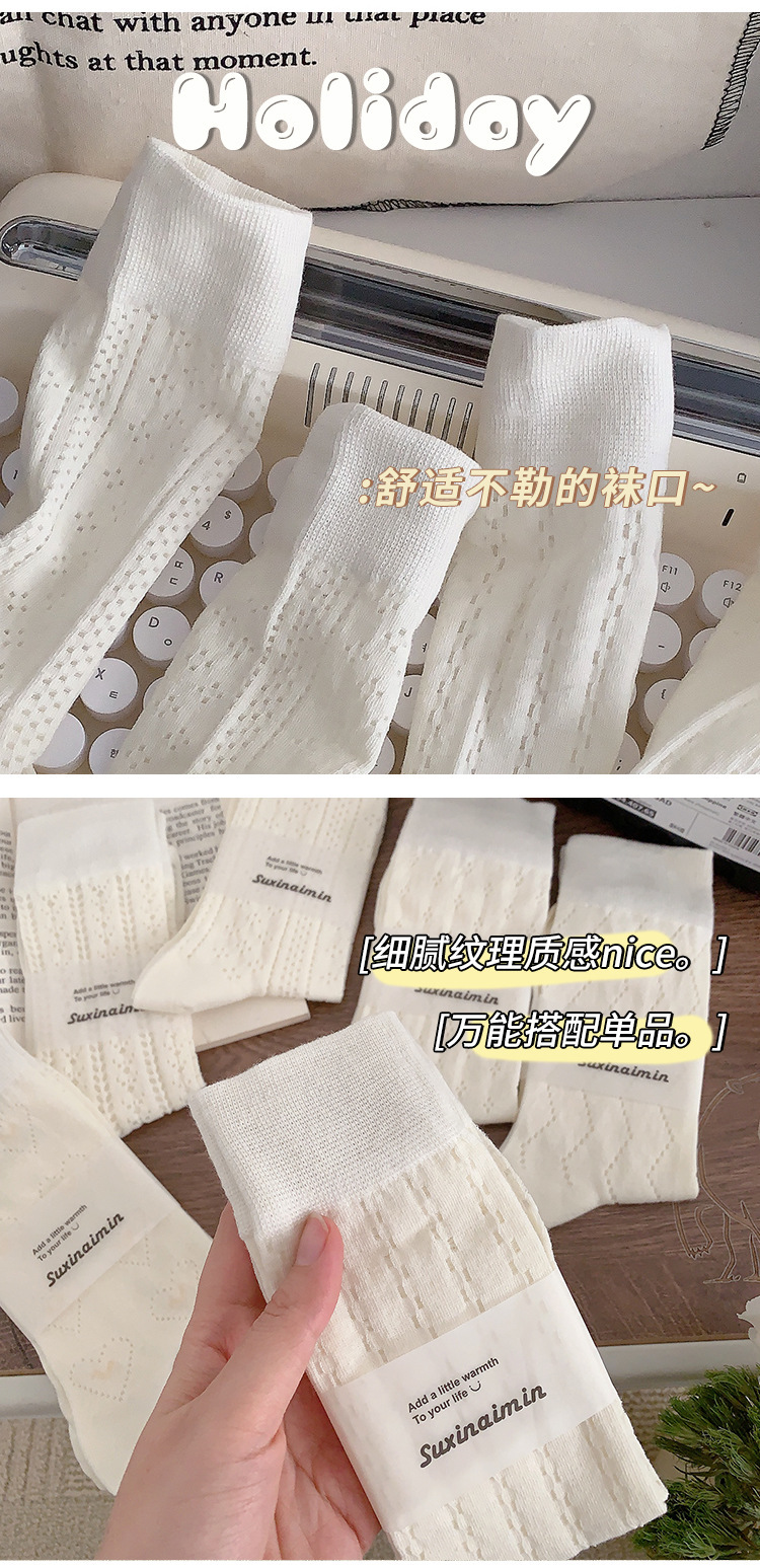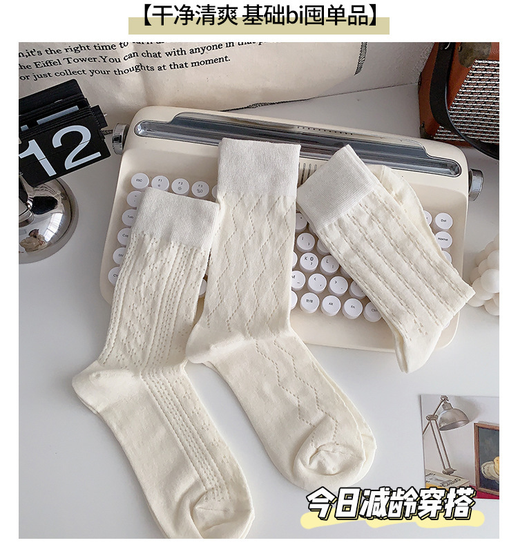 白色袜子女春夏季薄款中筒袜镂空网眼透气纯色日系韩版堆堆长袜子