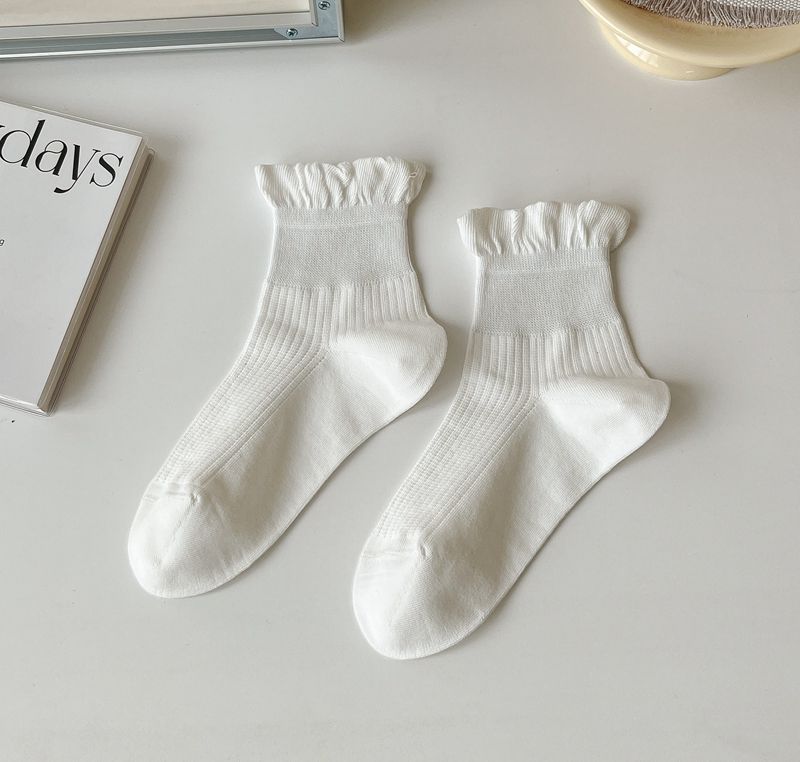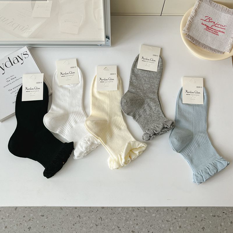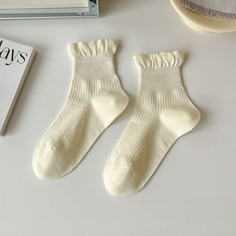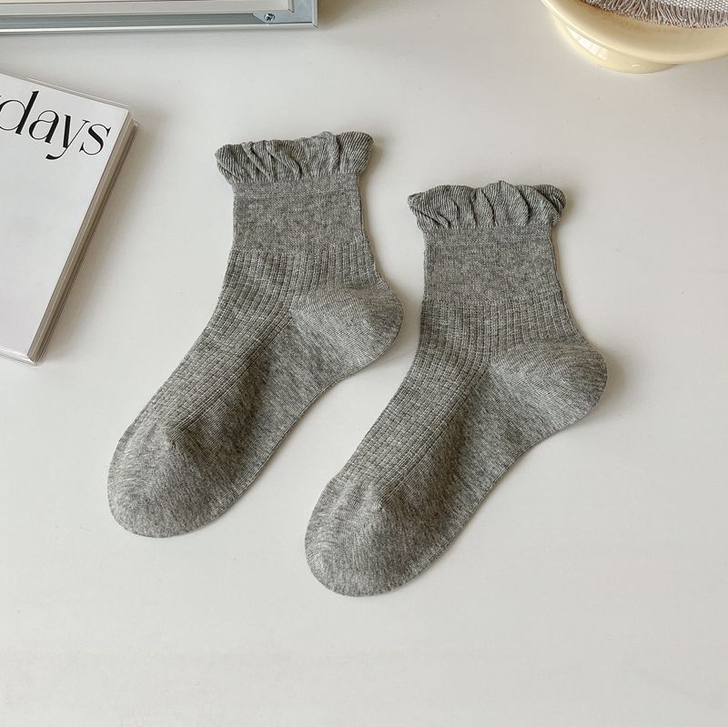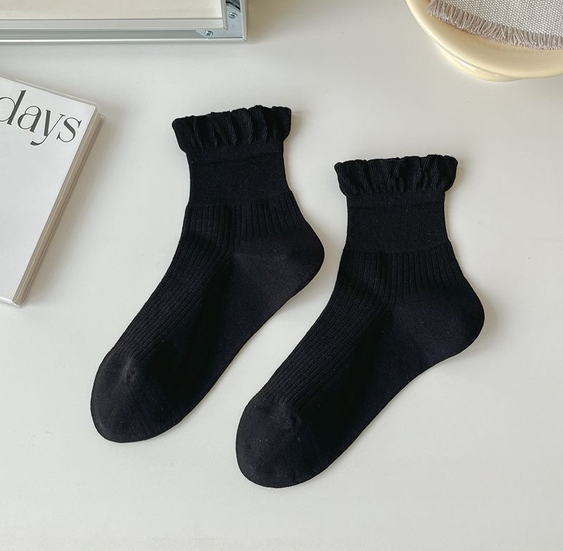 洛丽塔木耳边少女堆堆袜韩系短袜纯棉中筒袜日系花边袜