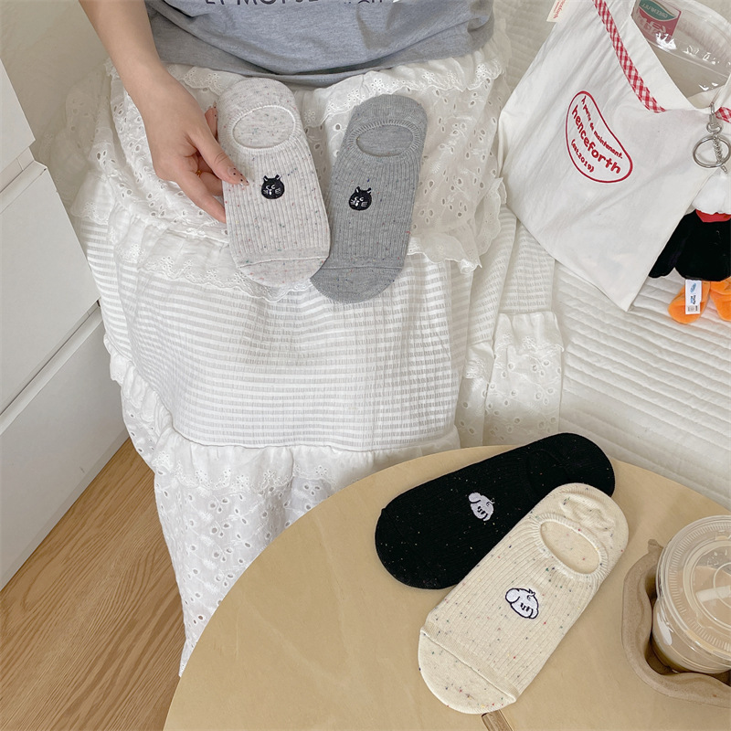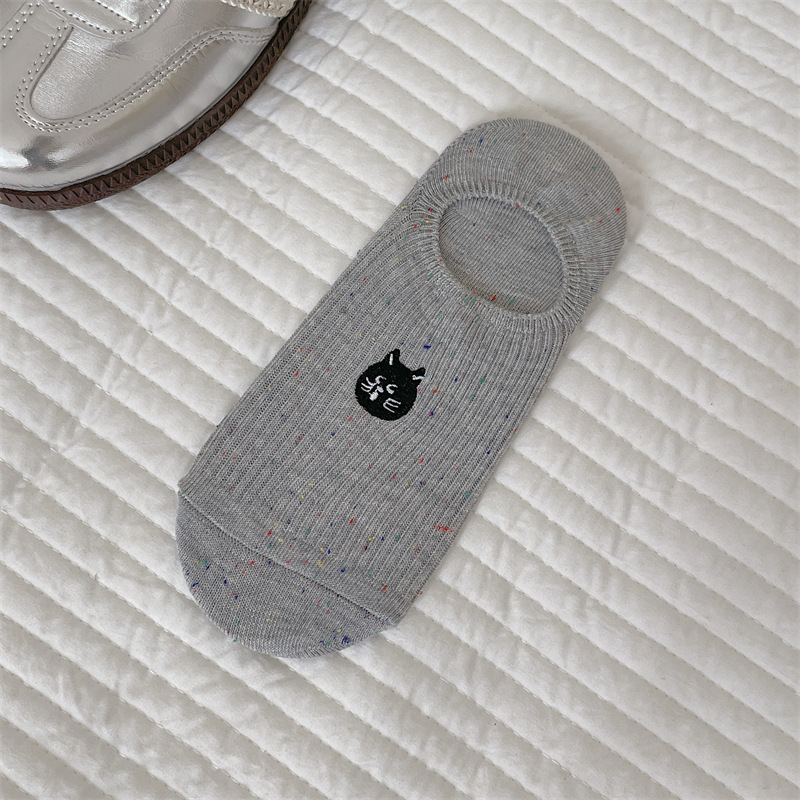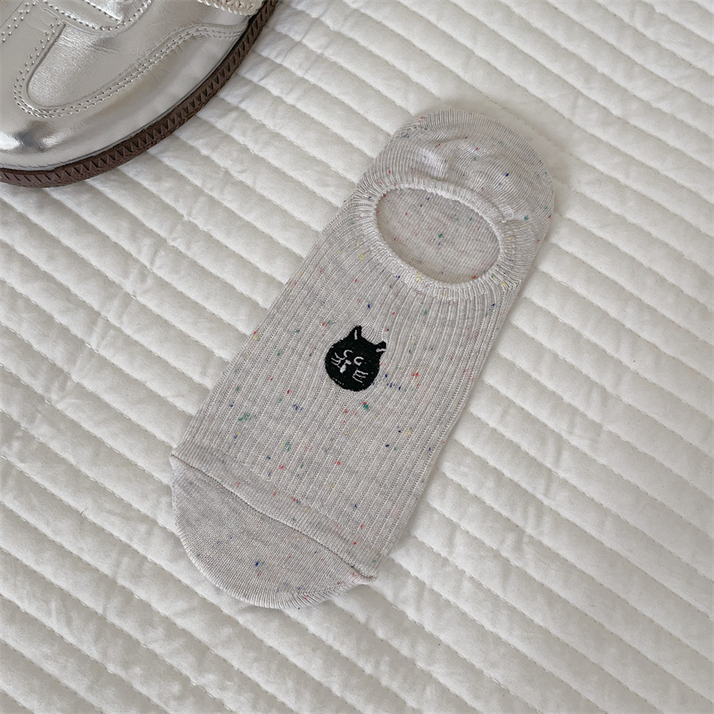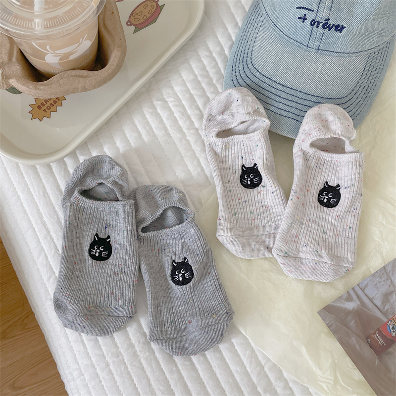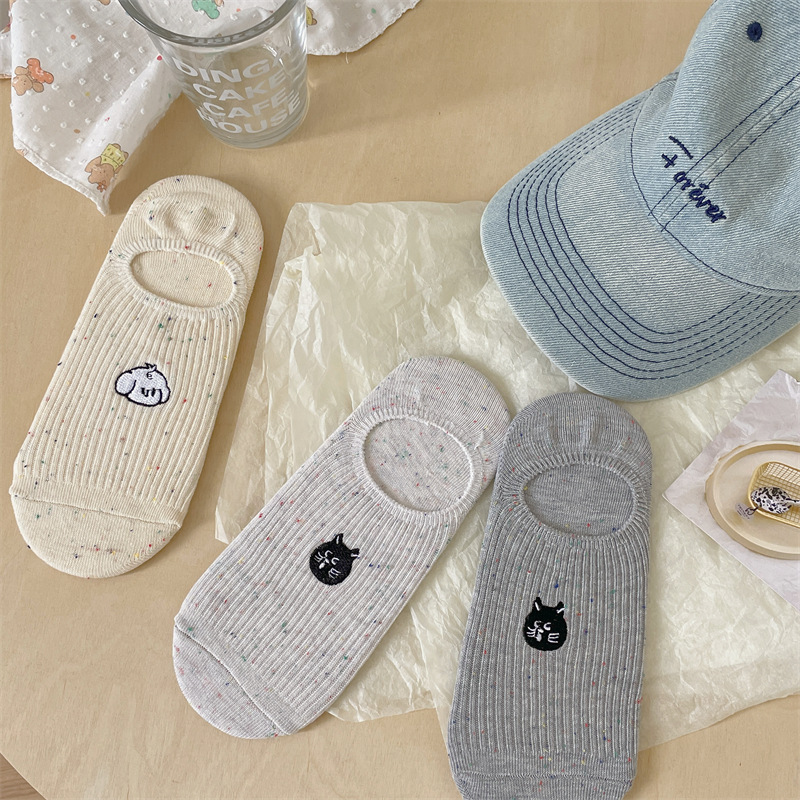 日系卡通可爱小猫刺绣船袜女夏季薄款防滑不掉跟隐形袜浅口短袜棉