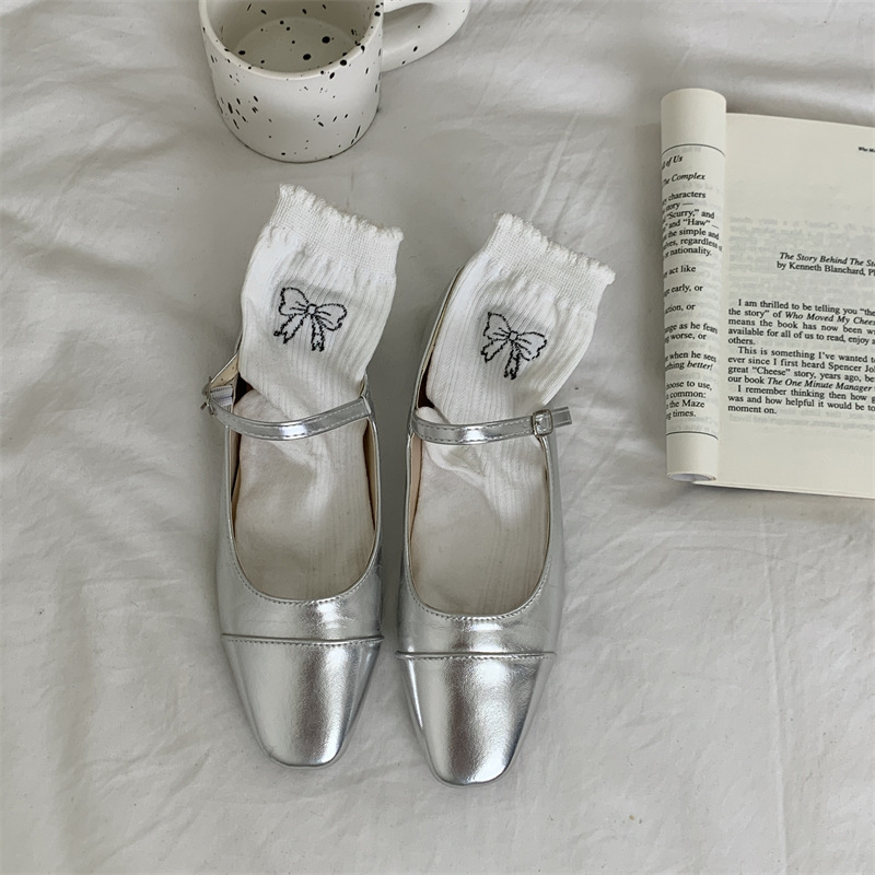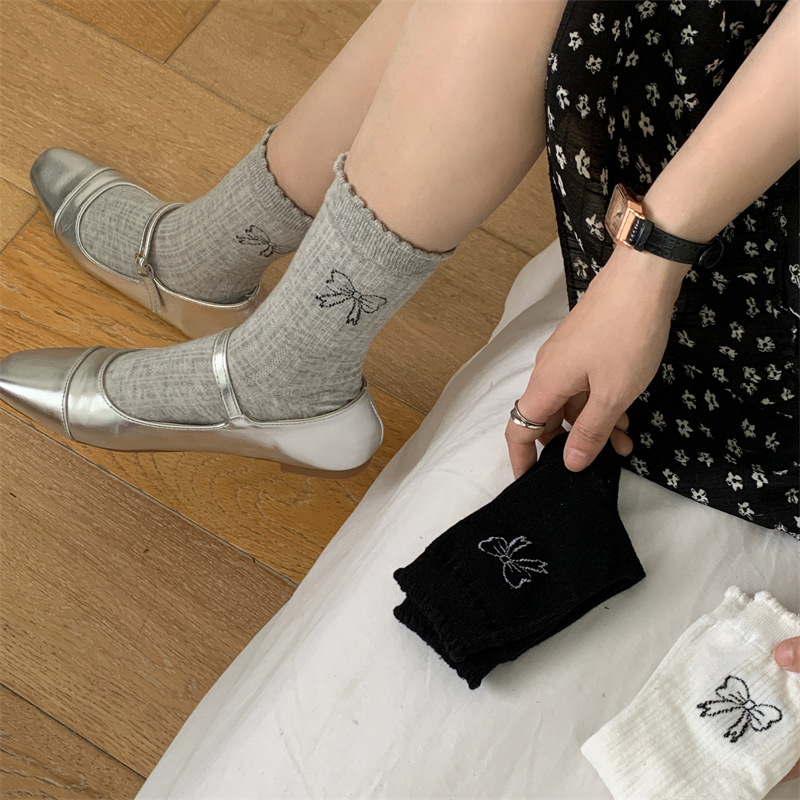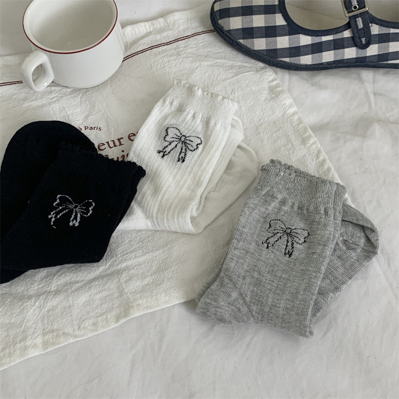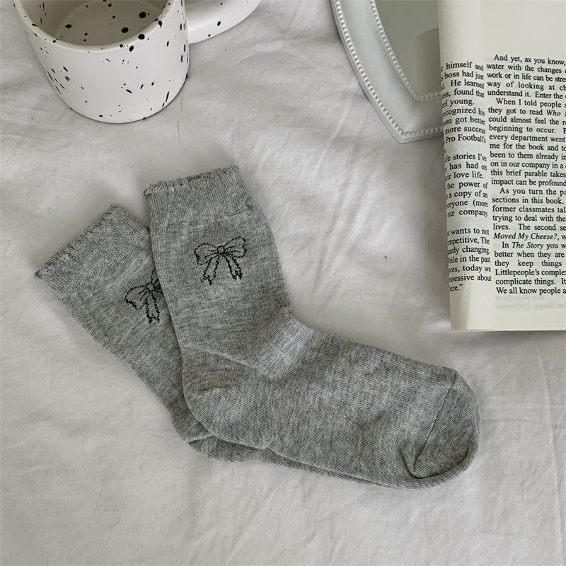 蝴蝶结堆堆袜女夏季灰色中筒袜网红风棉袜百搭韩版女袜