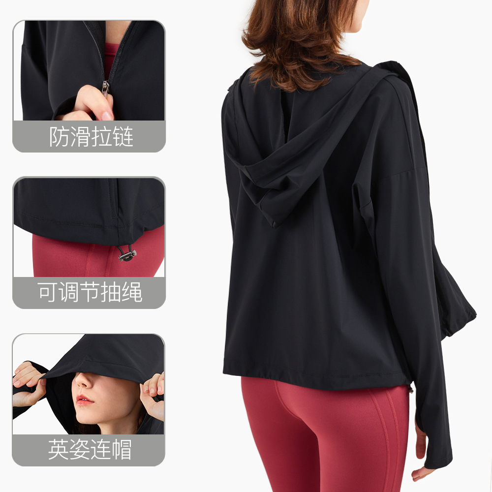 SC夏季凉感防晒衣拉链宽松连帽健身服女跨境轻薄透气跑步防晒外套