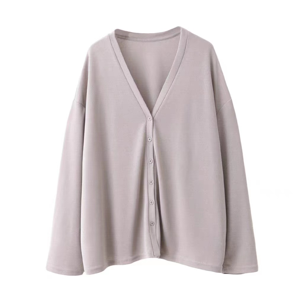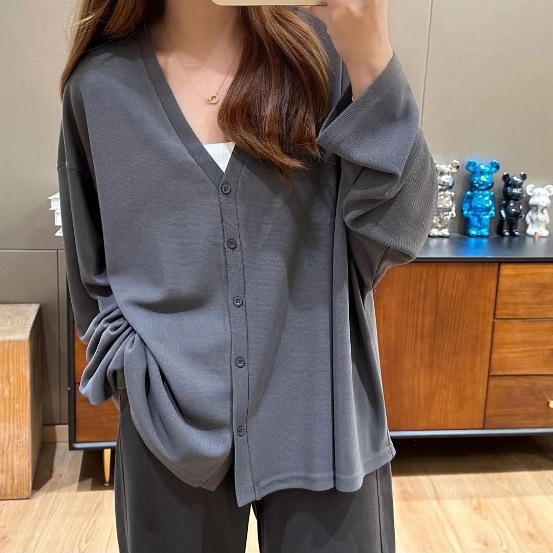 V领薄款冰丝开衫女春夏新款韩版宽松防晒衣服百搭纽扣长袖针织衫