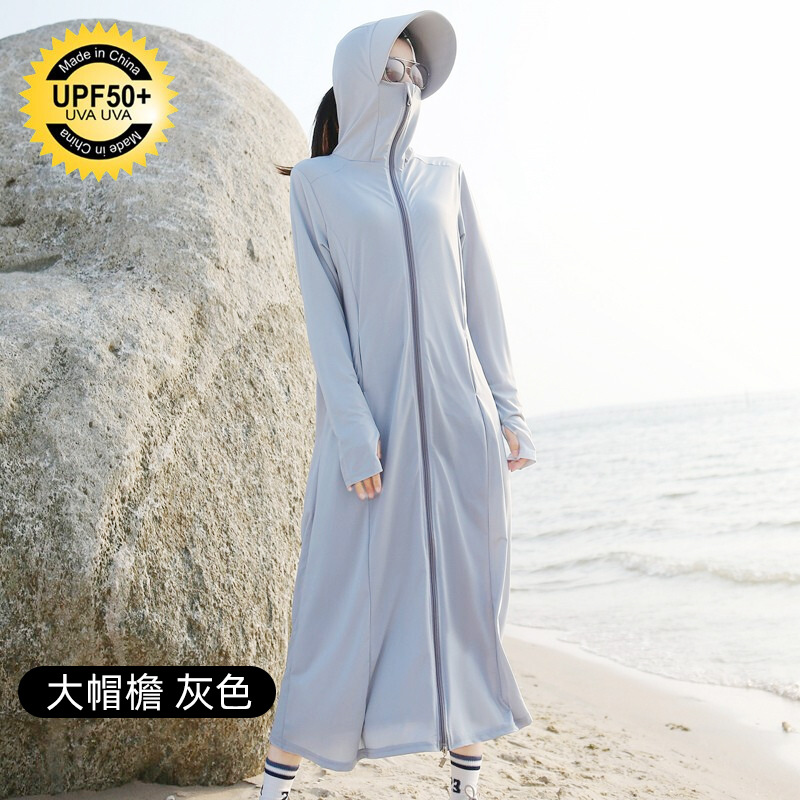 女士防晒衣长款夏季防紫外线冰丝大帽檐超薄透气防晒衣服