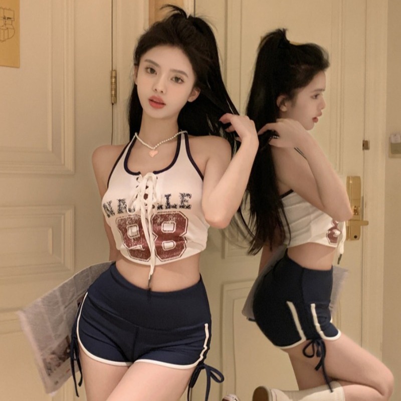 美式欧货字母吊带背心女装夏季辣妹绑带遮肉修身内搭短款上衣外穿