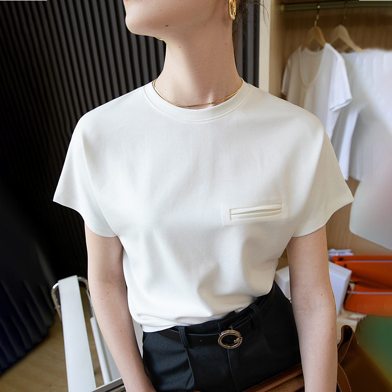 芙笙纪夏季新款微宽松小白t质感蝙蝠袖