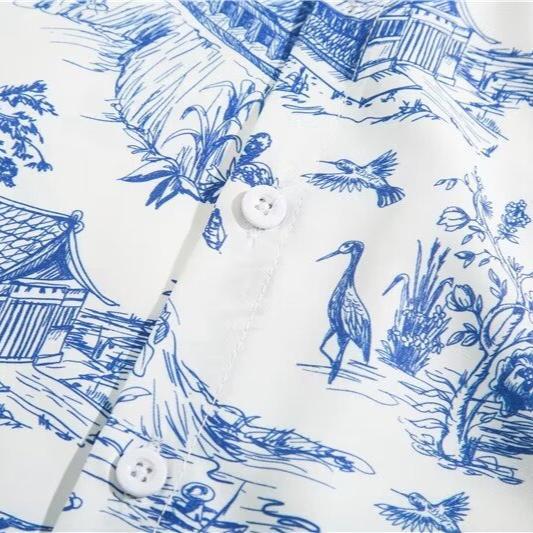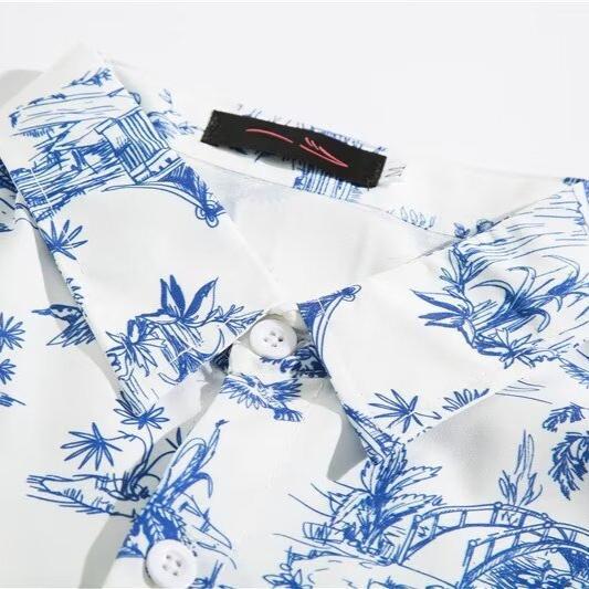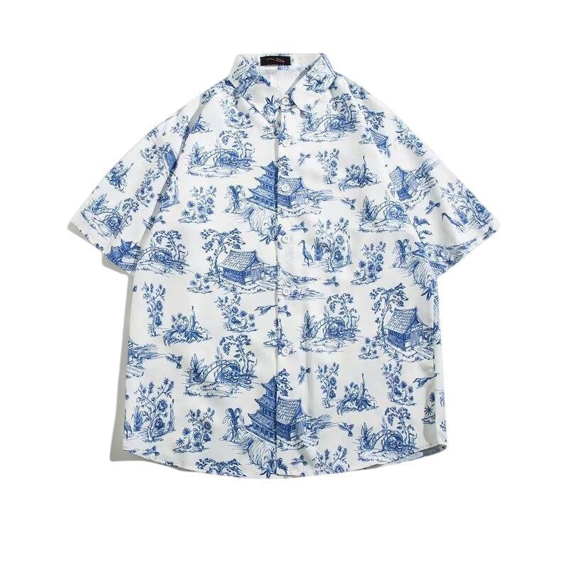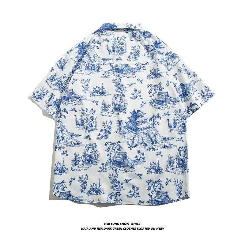 超火夏威夷沙滩衬衫短袖男夏季新款宽松港风复古海边沙滩度假衬衣