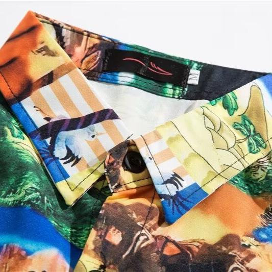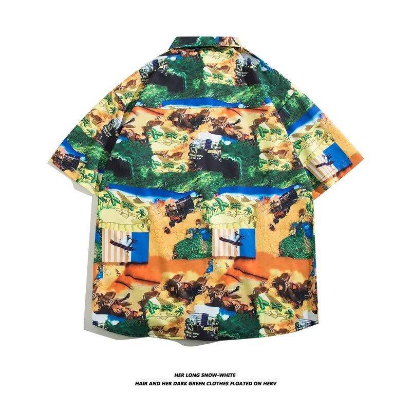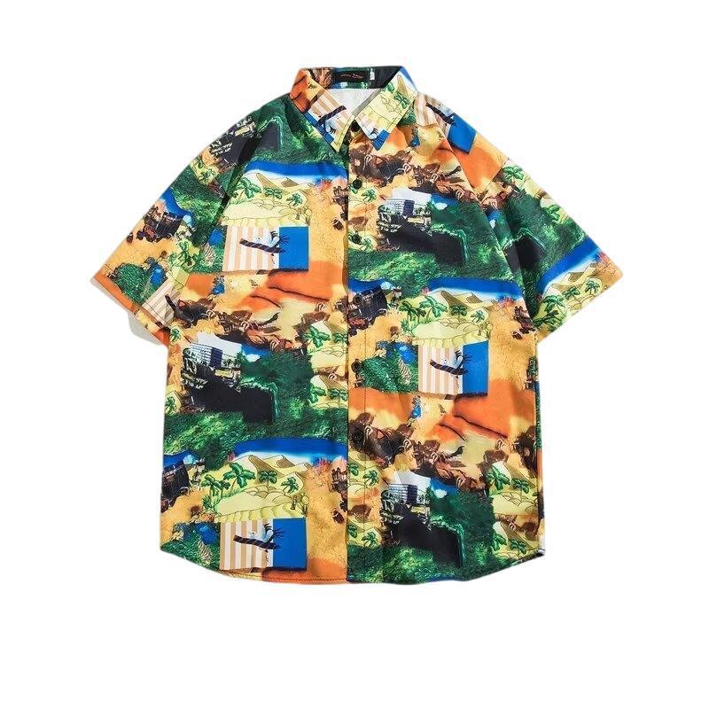 薄款速干五分袖花衬衫男生港风复古韩版潮流宽松百搭夏威夷风衬衣