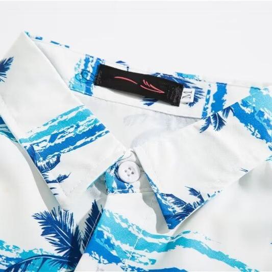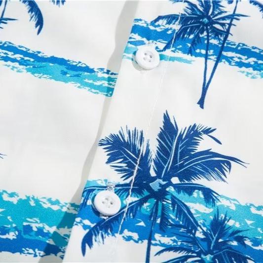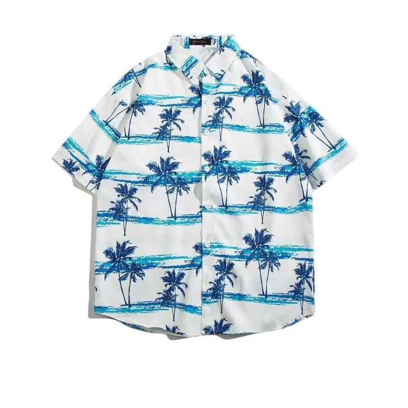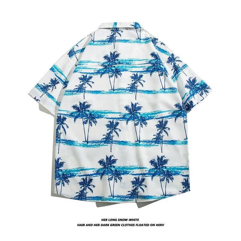 夏威夷冰丝短袖衬衫男生夏季美式潮牌痞帅花衬衣宽松百搭开衫上衣