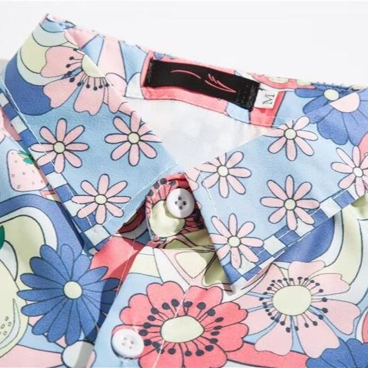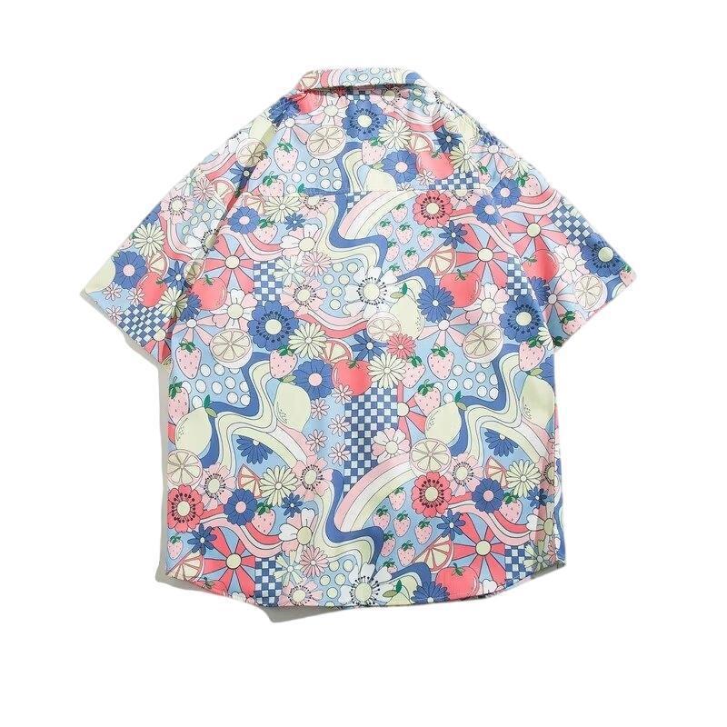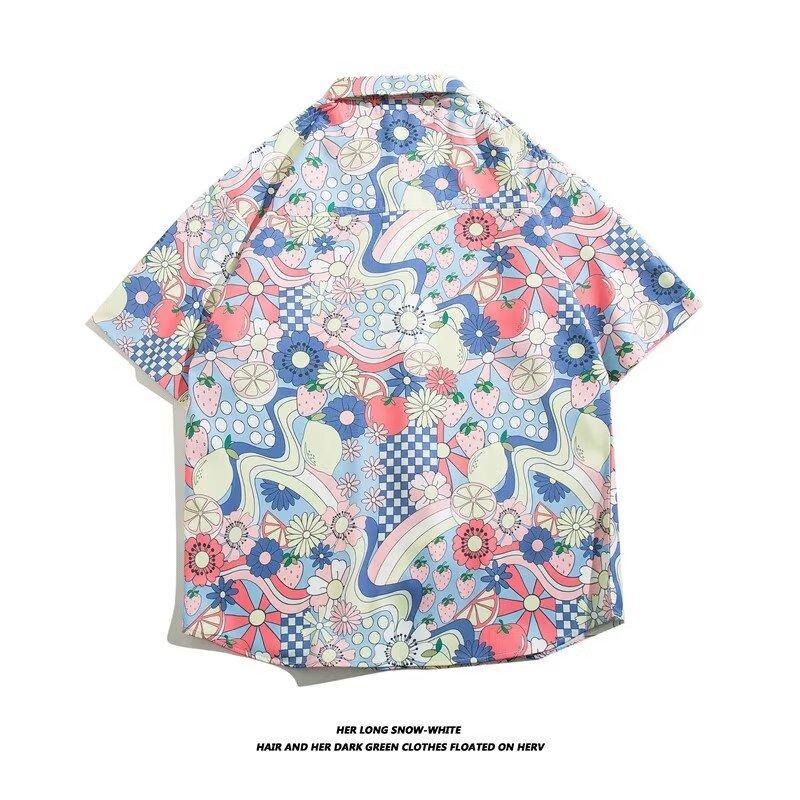 夏季潮牌ins复古痞帅短袖衬衣男百搭宽松情侣花衬衫嘻哈潮牌上衣