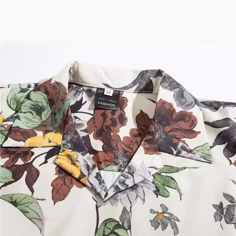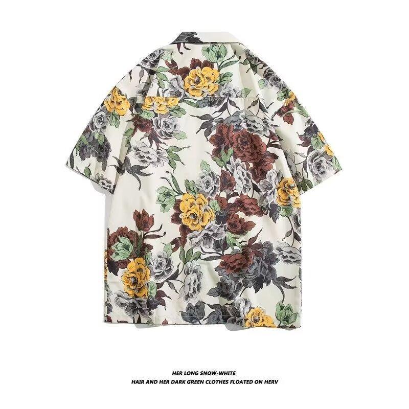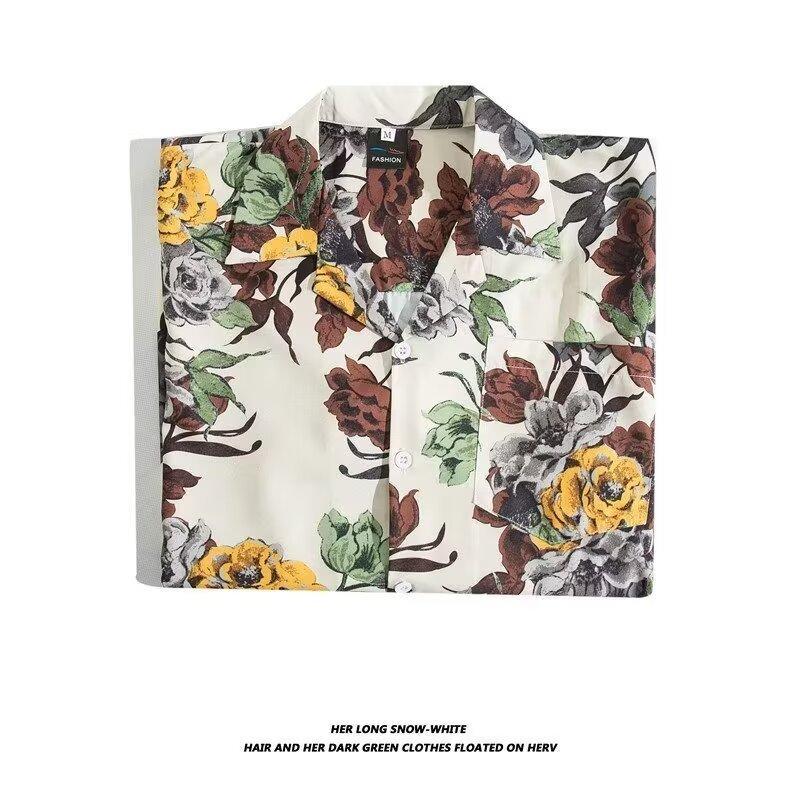 痞帅花衬衫男短袖夏季潮牌小众设计感五分袖衬衣夏威夷风休闲上衣