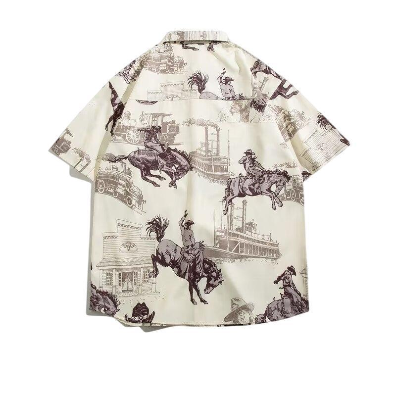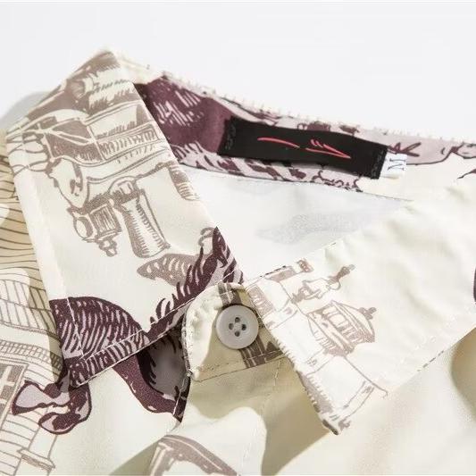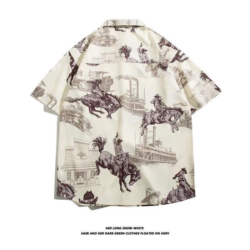 港风ins短袖花衬衫男生夏季日系休闲沙滩衬衣潮流宽松夏威夷外套