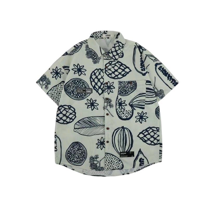 欧美嘻哈风满印短袖衬衫夏季男生潮牌街头oversize夏威夷半袖衬衣
