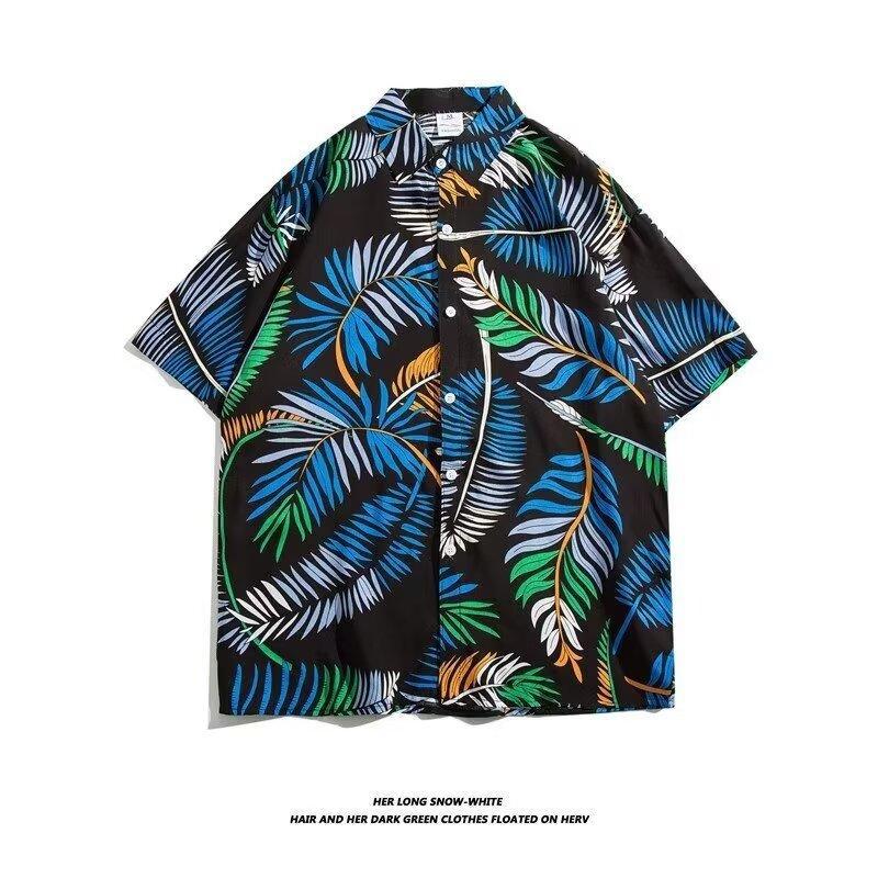 复古港风短袖花衬衫男生夏季新款高级设计感小众宽松别致上衣外套