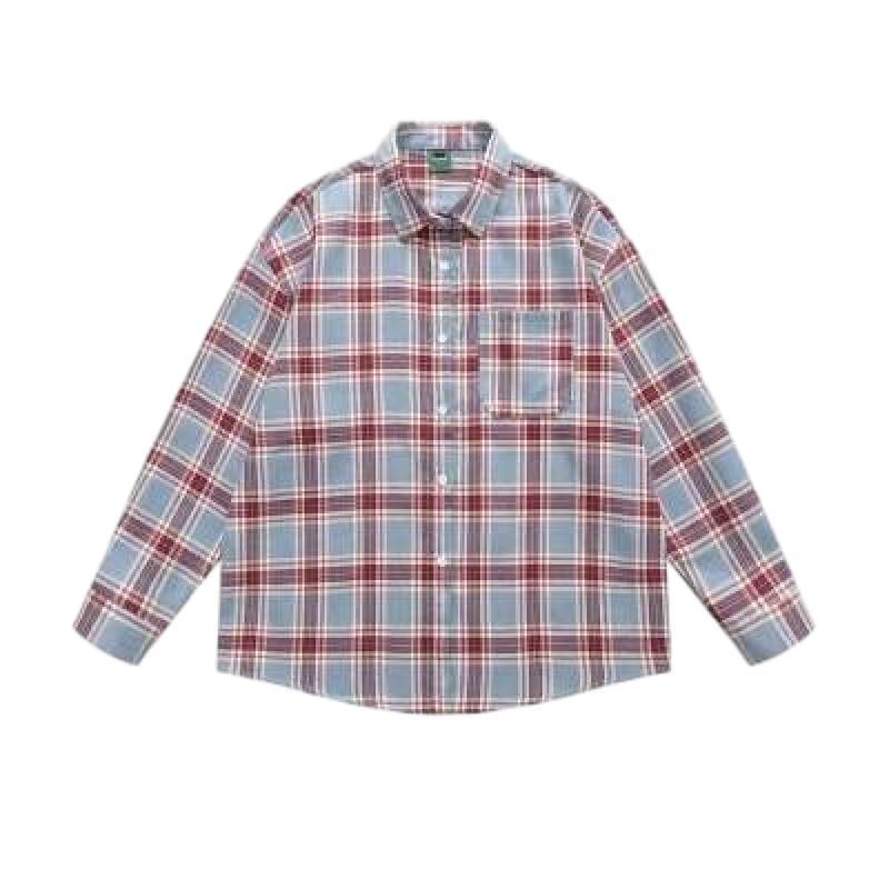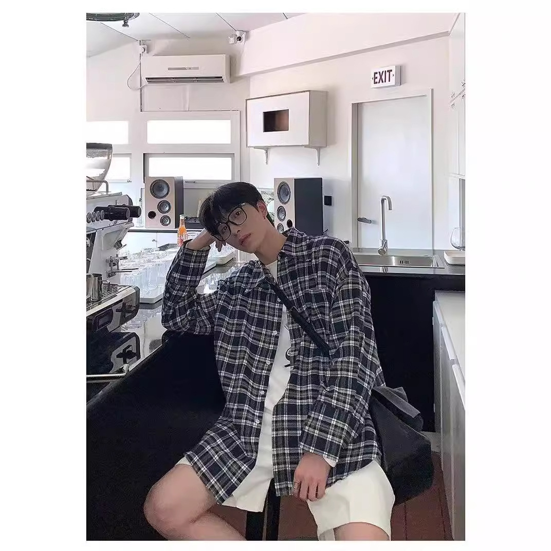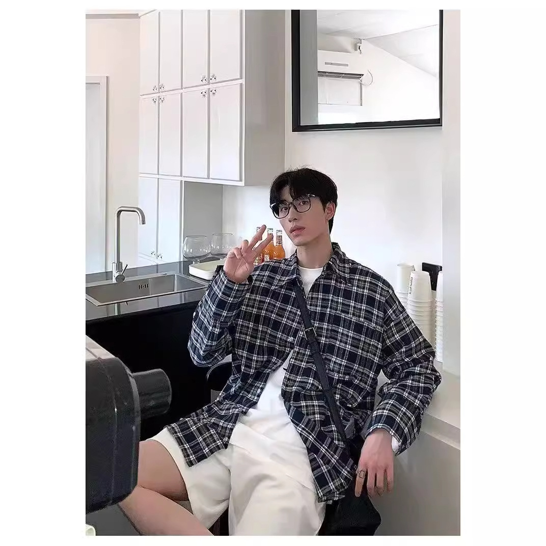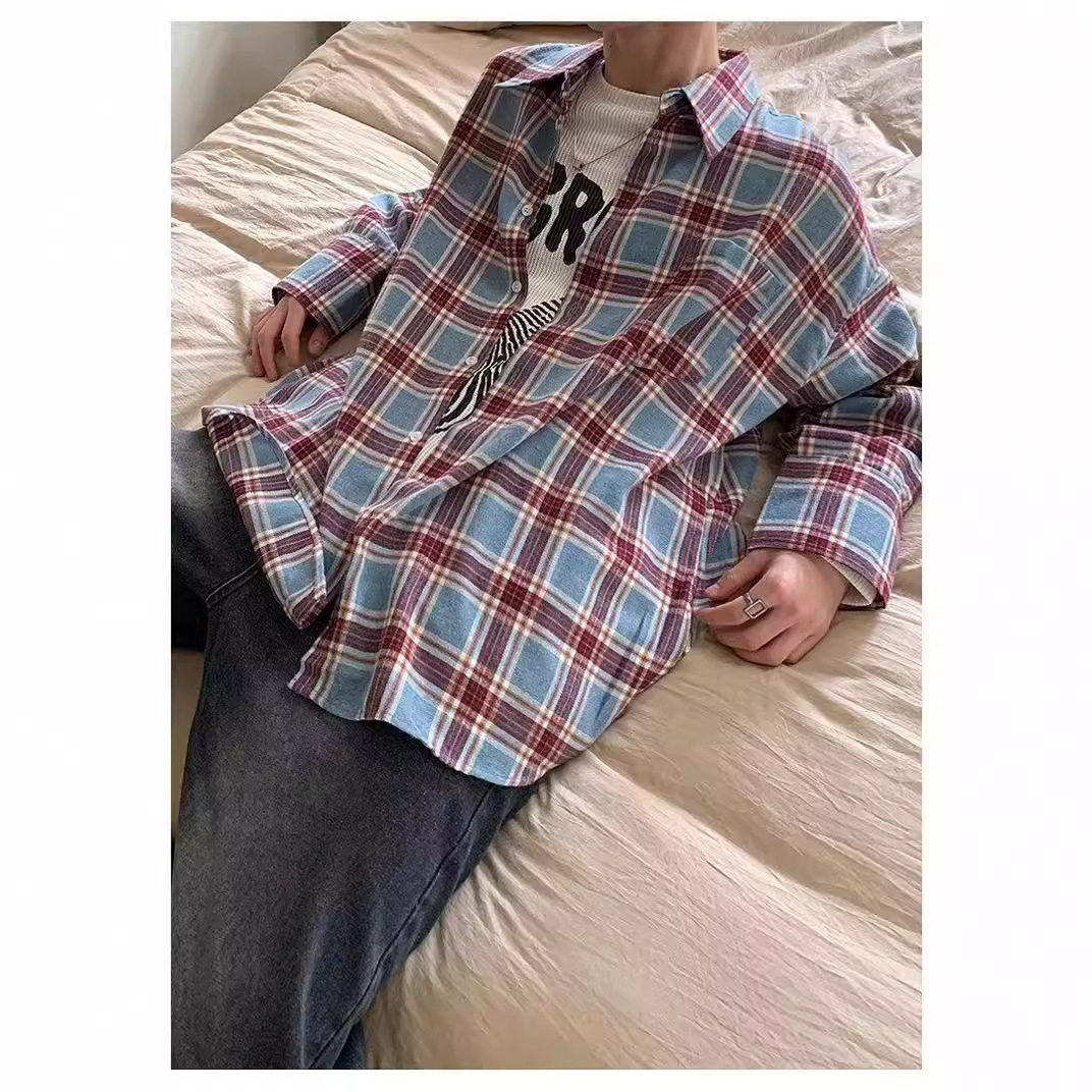 日系格子长袖衬衫男生春夏季新款痞帅高级感宽松休闲潮牌衬衣外套