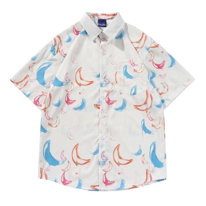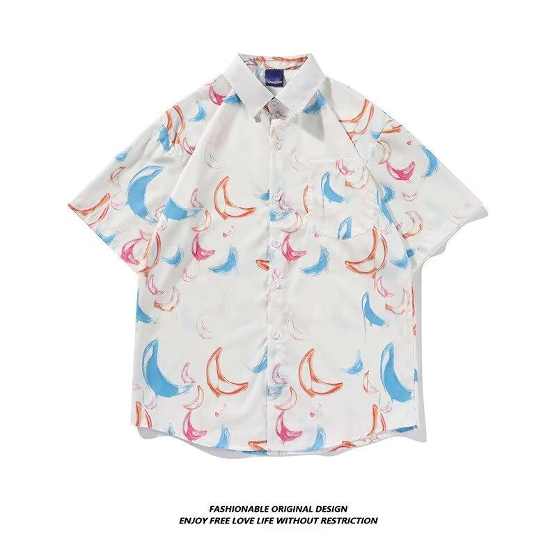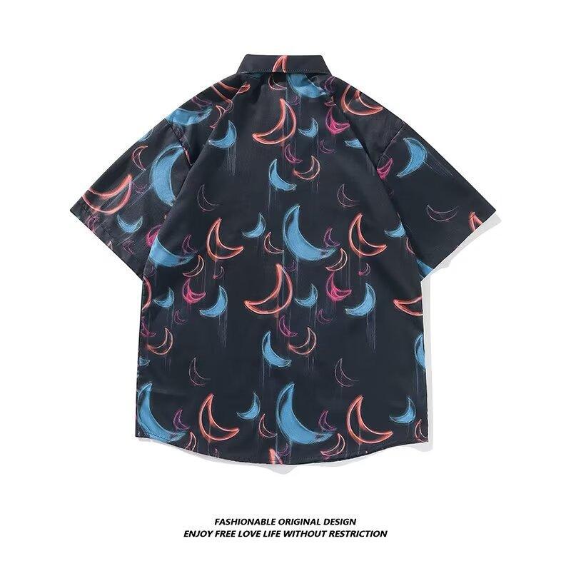 美式街头复古夏威夷满印短袖衬衫男生ins潮牌情侣宽松休闲花衬衣