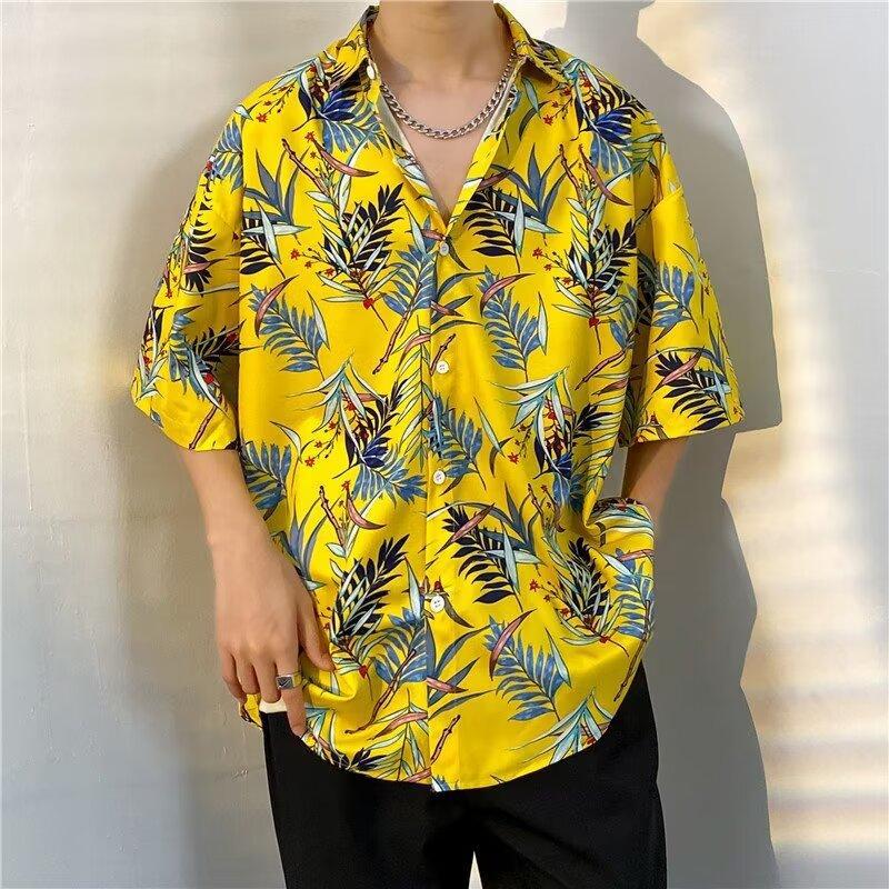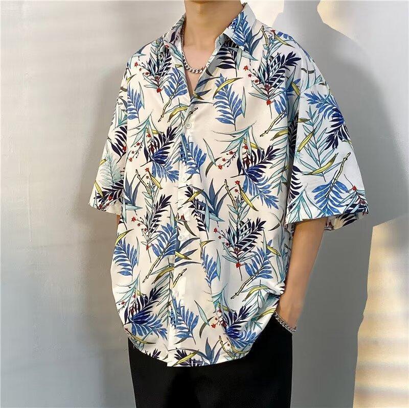 夏威夷碎花短袖衬衫男生夏季新宽松休闲沙滩度假风情侣装半袖上衣